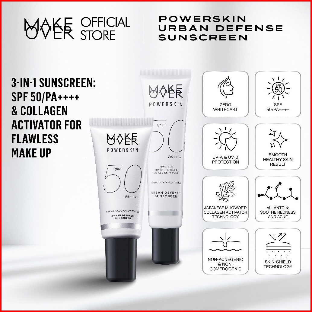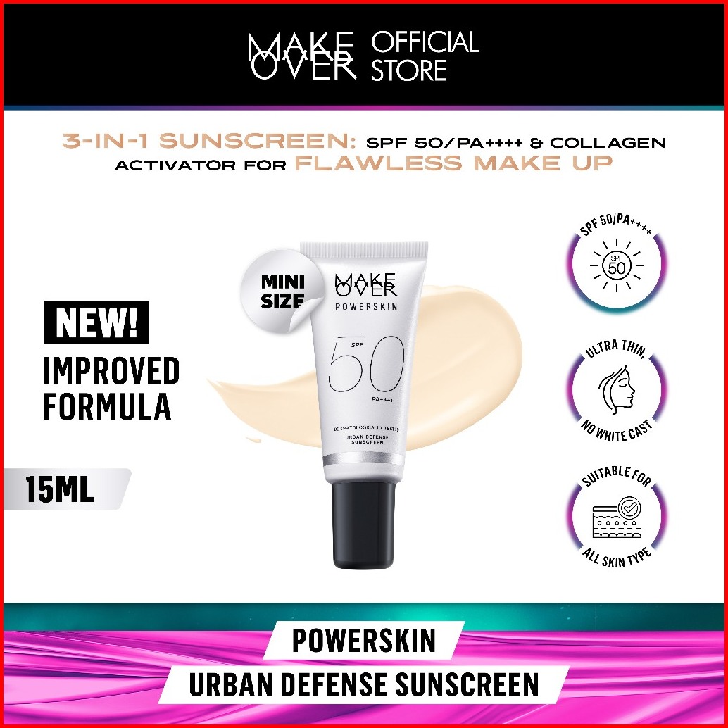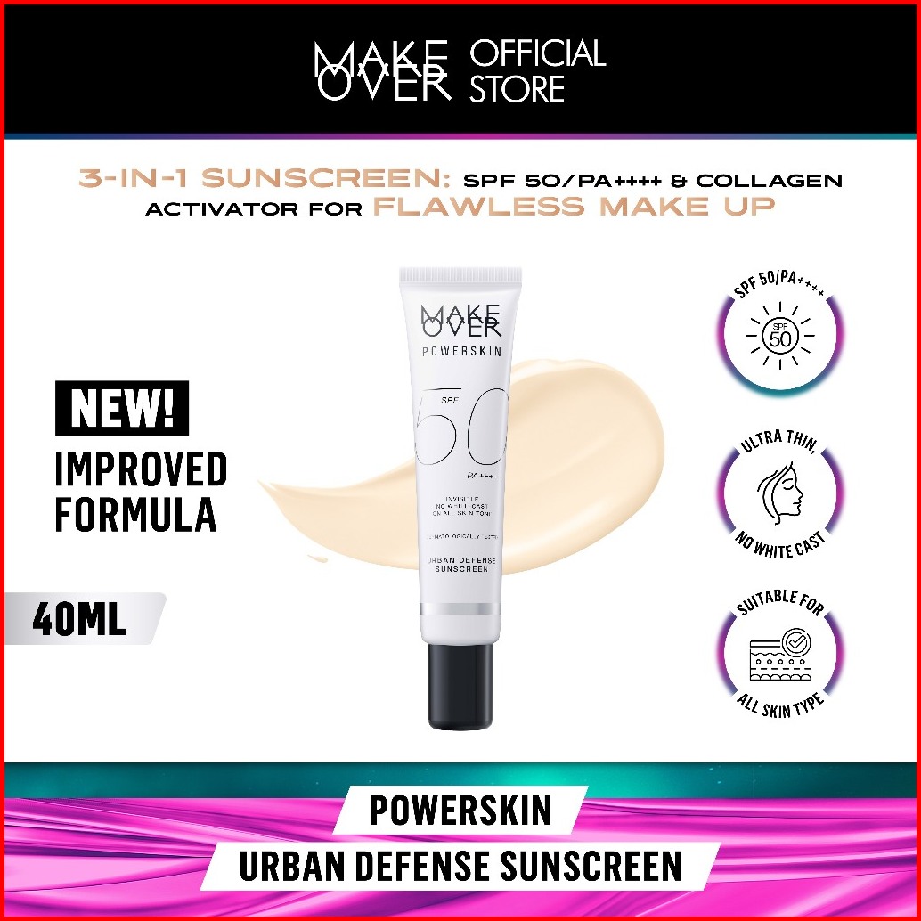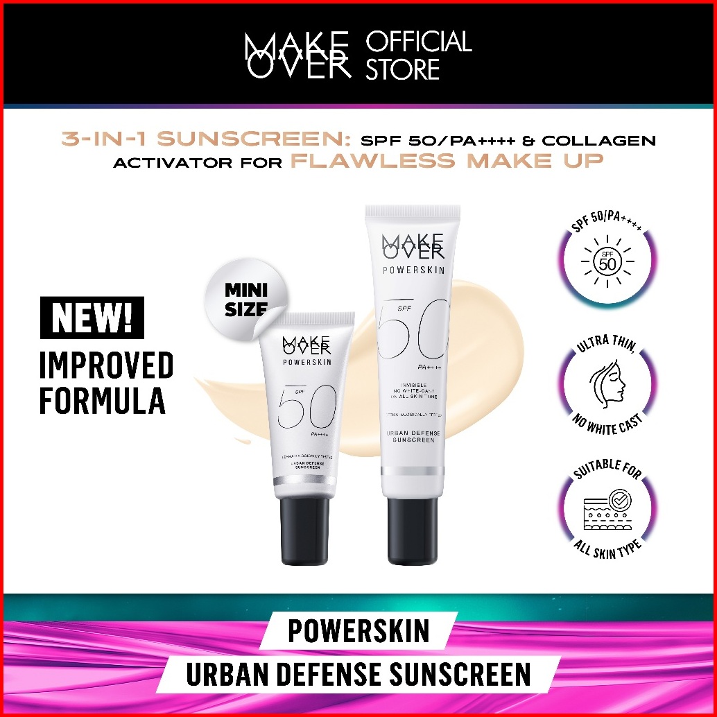 Make Over Powerskin Urban Defense Sunscreen - Proteksi Uva Uvb Spf50 Pa Invisible Tidak Berwarna Ringan Tidak Whitecast