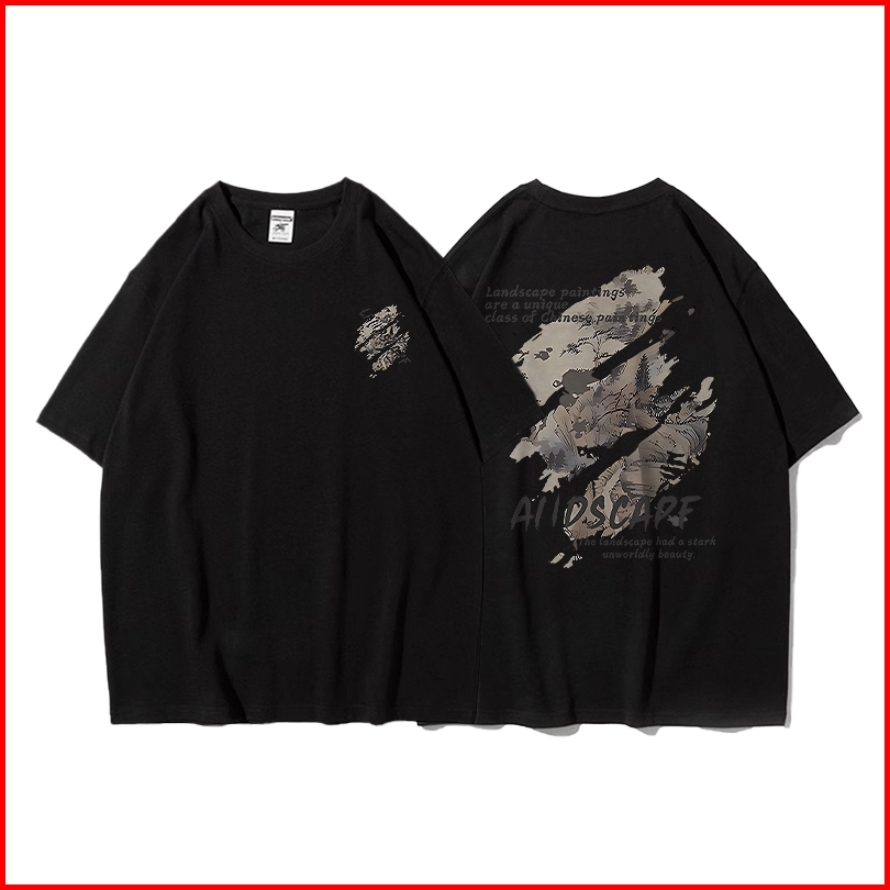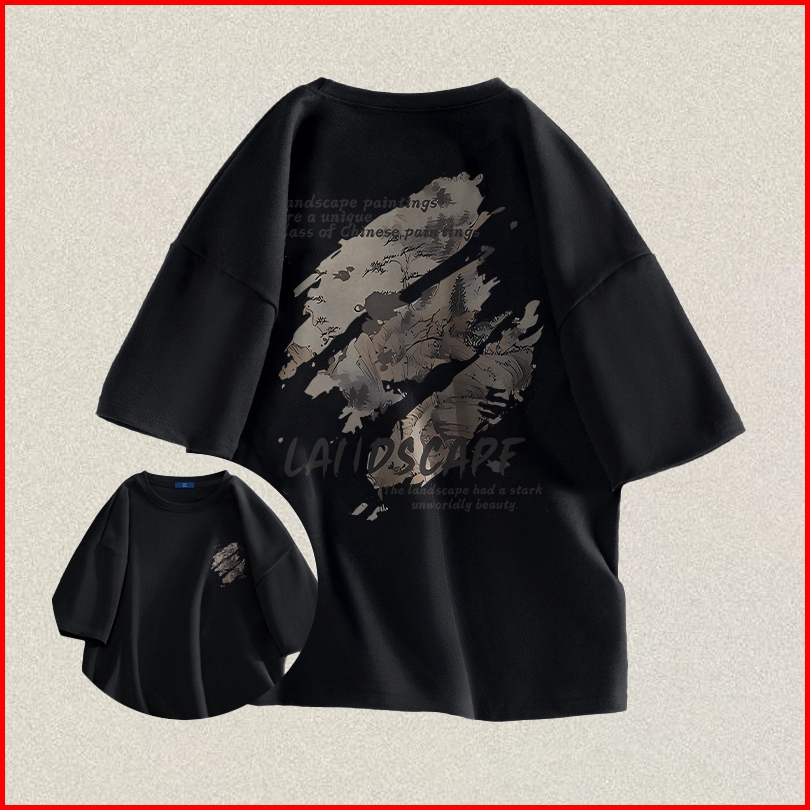 Renelle Streetwear T-shirt Oversize Pria Distro Baju Oversize Pria Kaos Cotton Combed 30s Claw Mark Landscape Painting O