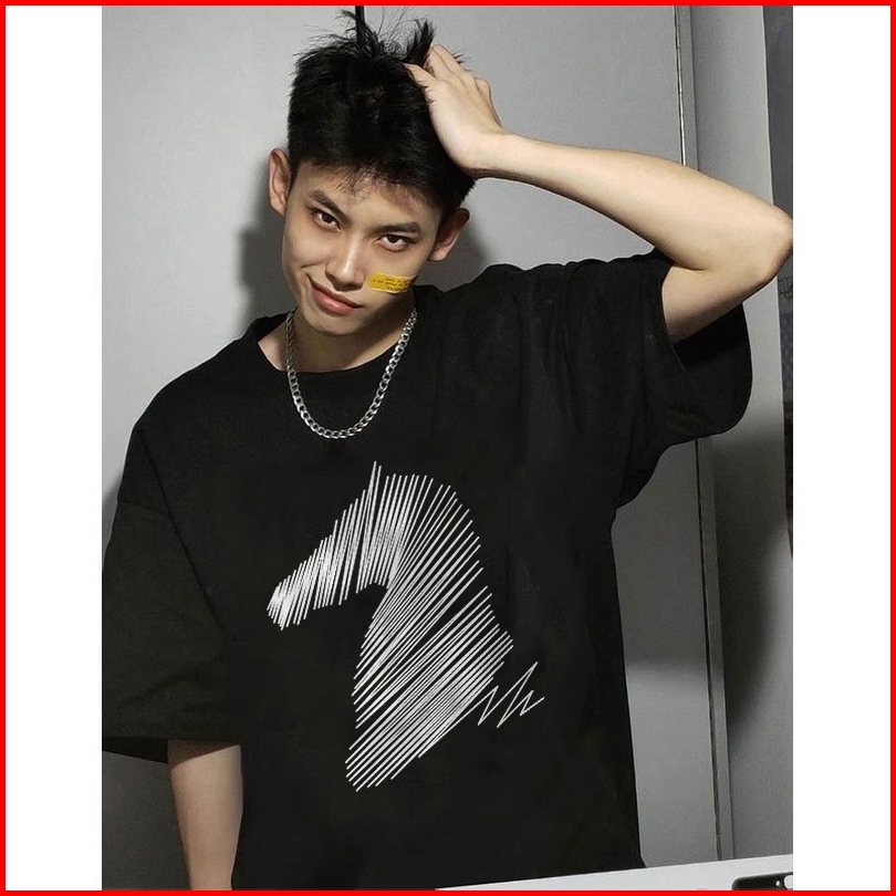 Renelle Kaos Pria Keren Kece Hitam Linear Horse Head Print Baju Kaos Pria Distro Original 100 Baju Kaos Oversize Pria Te
