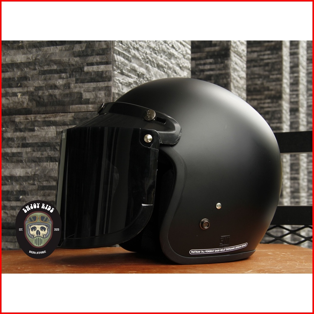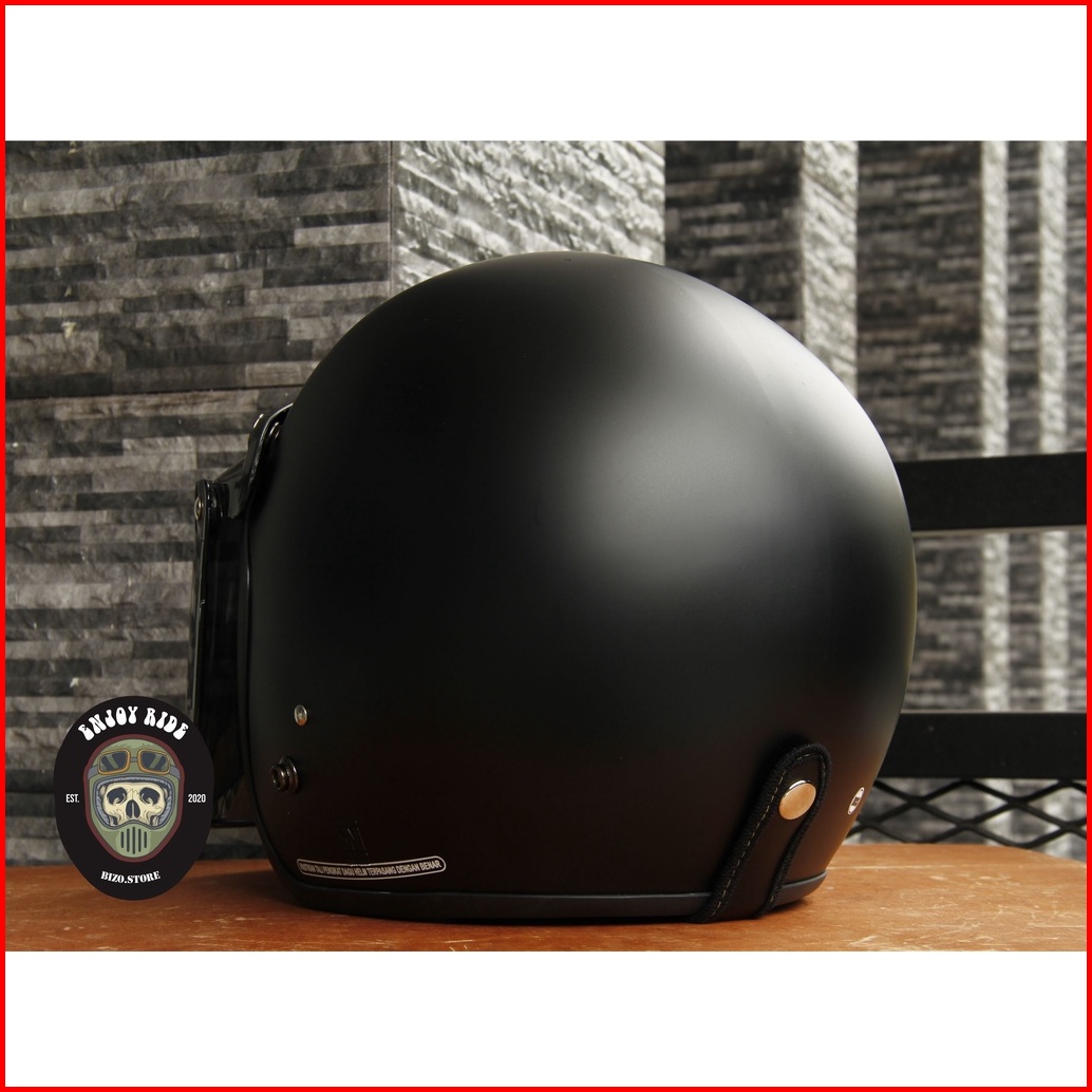 Bogo Helm Dewasa Retro Full Leher Polos Kaca Datar Flat Injak Sni Sks