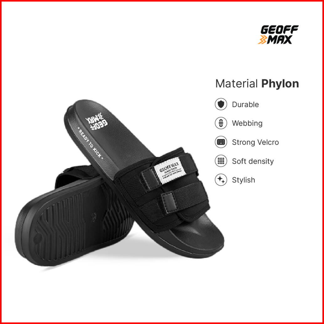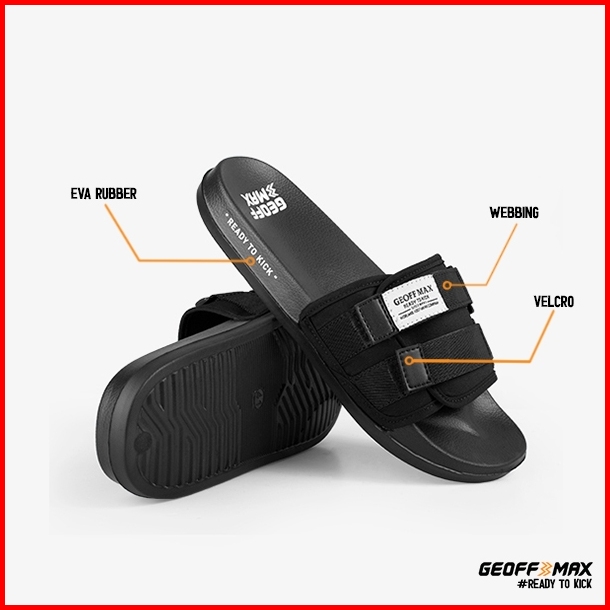 Geoff Max - Freddo Black - Sandal Slop Slipper Hitam Sandal Anti Slip