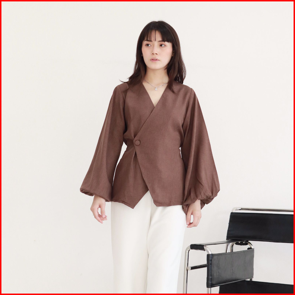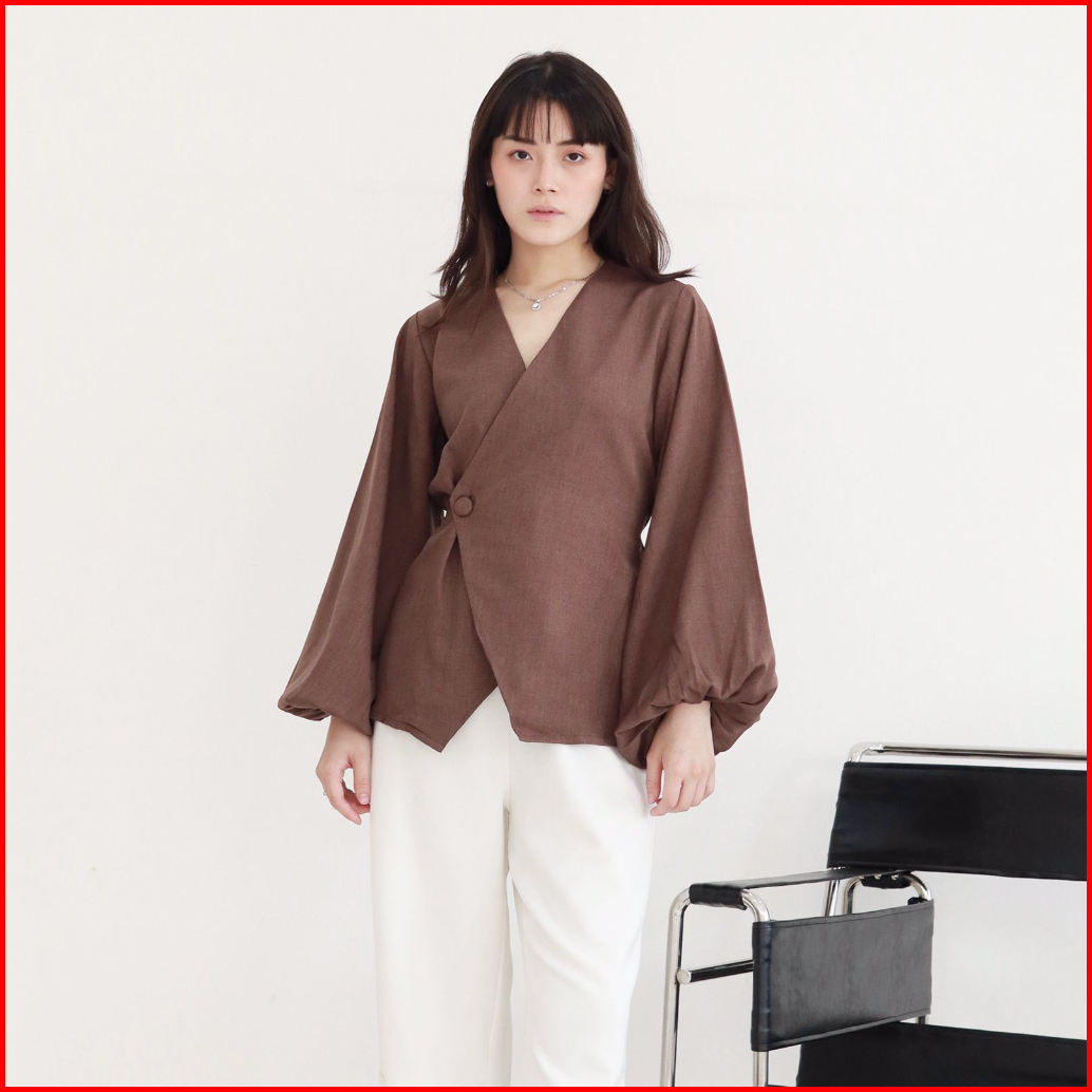 Msmo Taylor Top Wanita Baju Atasan Wanita Blouse Wanita Brown Grey
