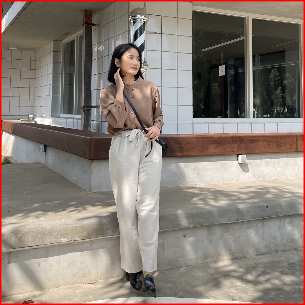 Msmo Berry Linen Straight Pants Celana Kantor Celana Kulot Wanita Celana Linen