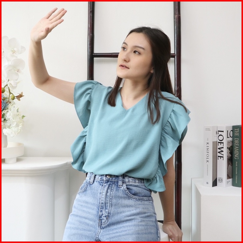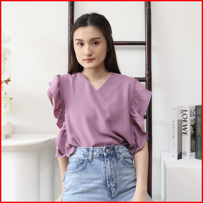 Msmo Eileen Ruffle Sleeve Top Atasan Wanita Blouse Wanita Kaos Wanita Top Wanita