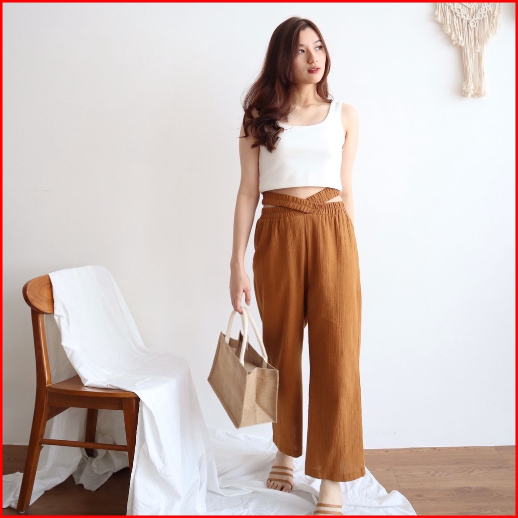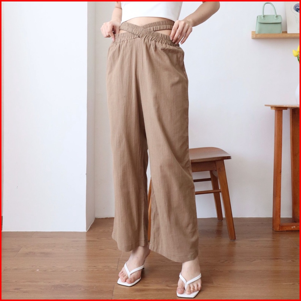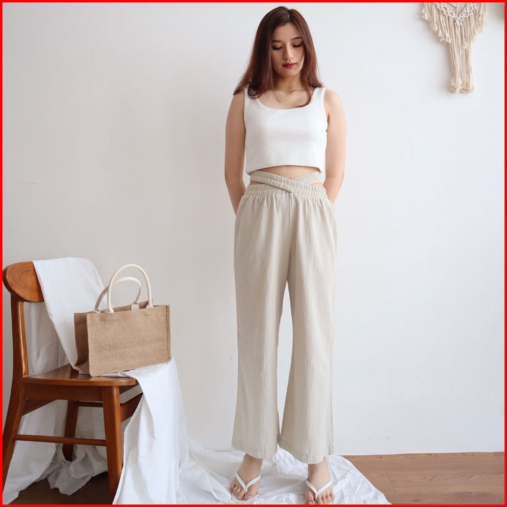 Msmo Kkuma Highwaist Pants Linen Cross Waist Celana Kulot Wanita Celana Kulot Wanita Celana Panjang Wanita