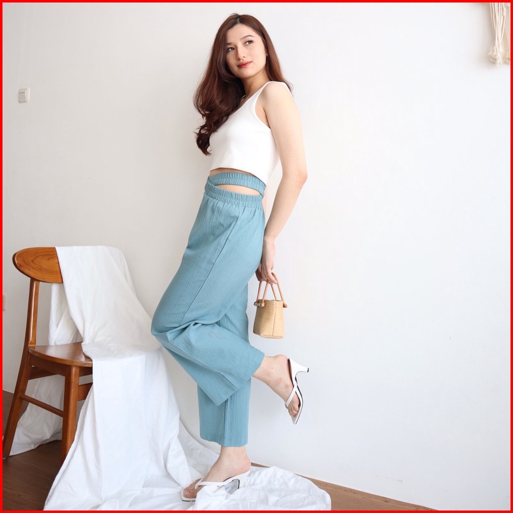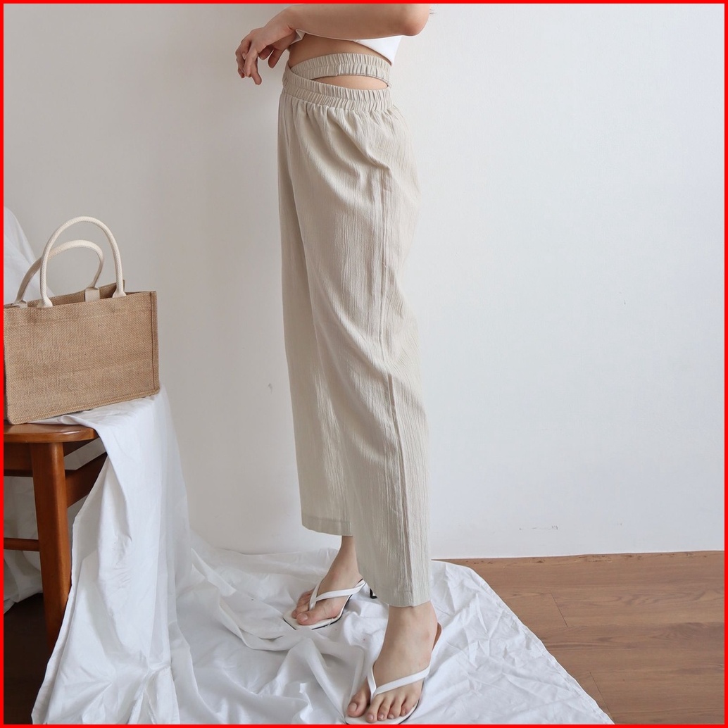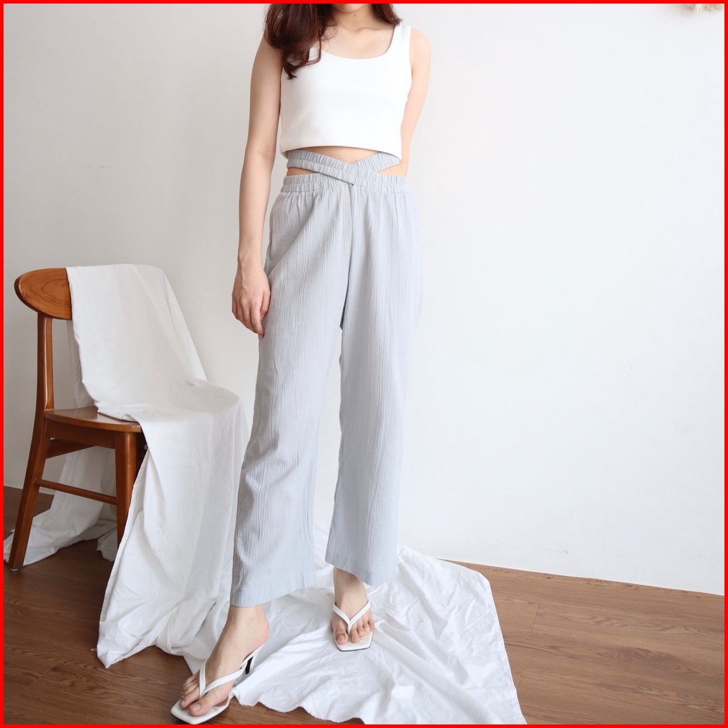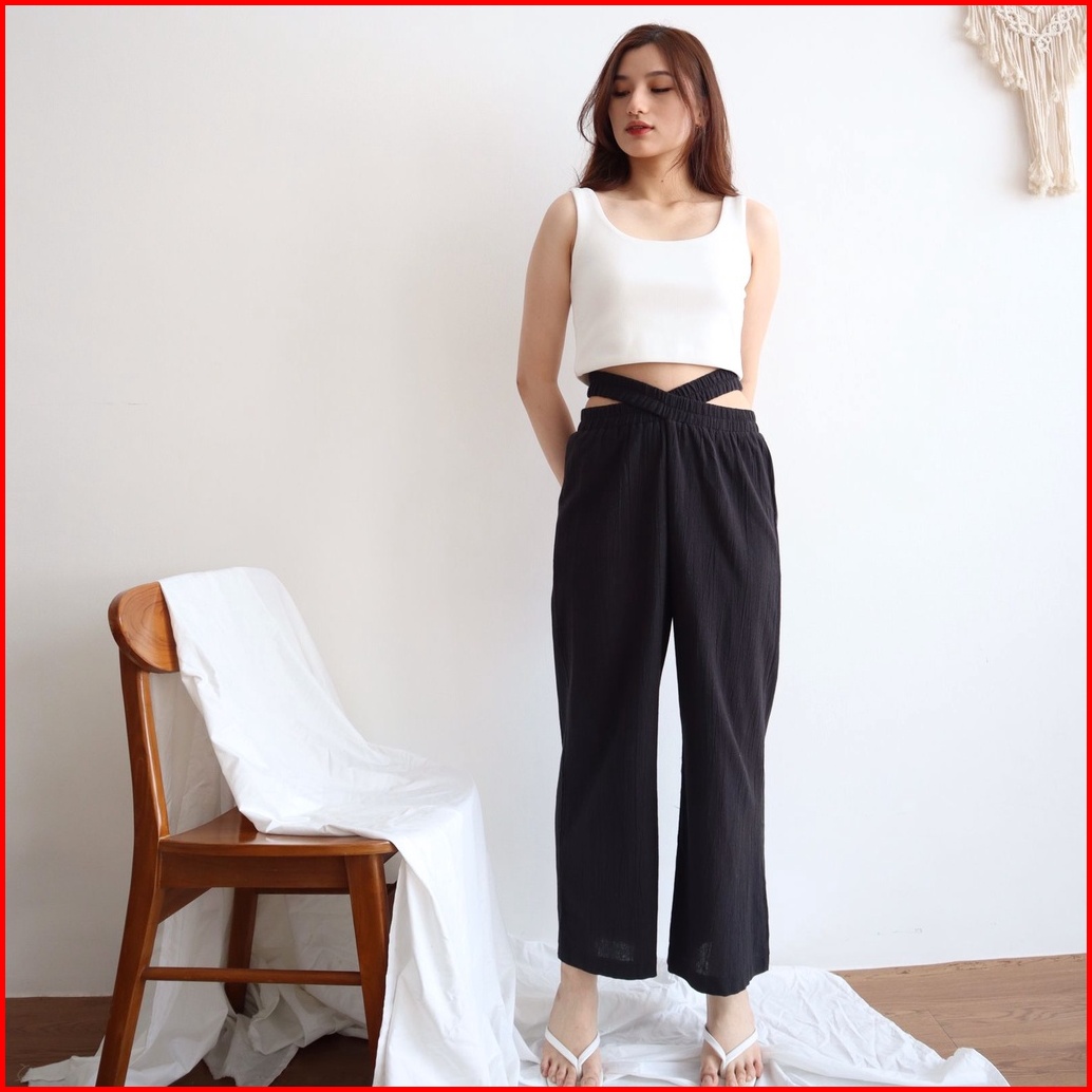 Msmo Kkuma Highwaist Pants Linen Cross Waist Celana Kulot Wanita Celana Kulot Wanita Celana Panjang Wanita