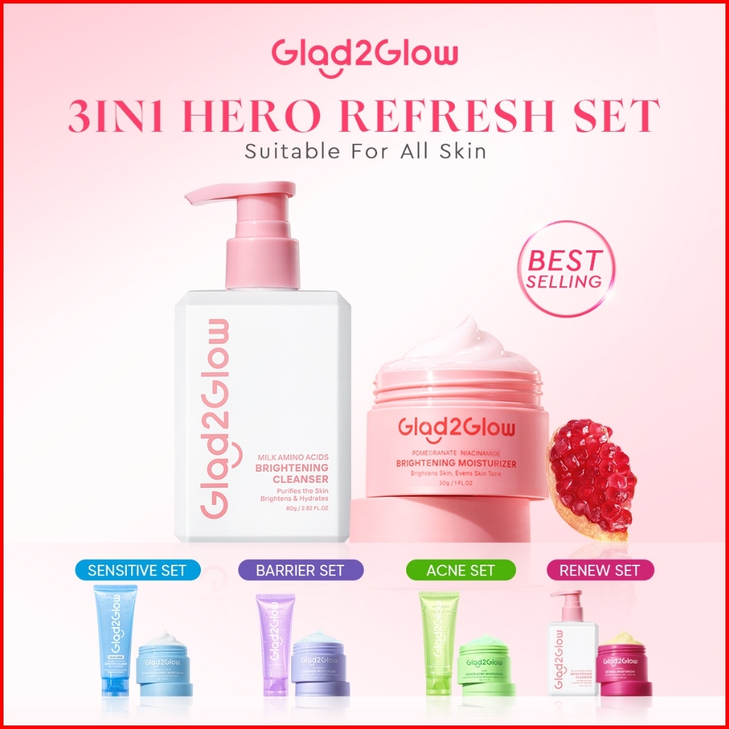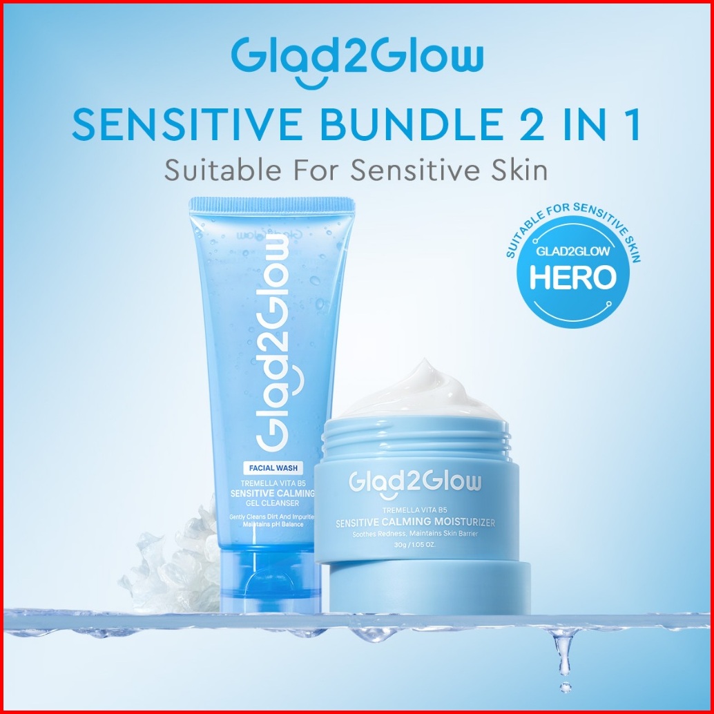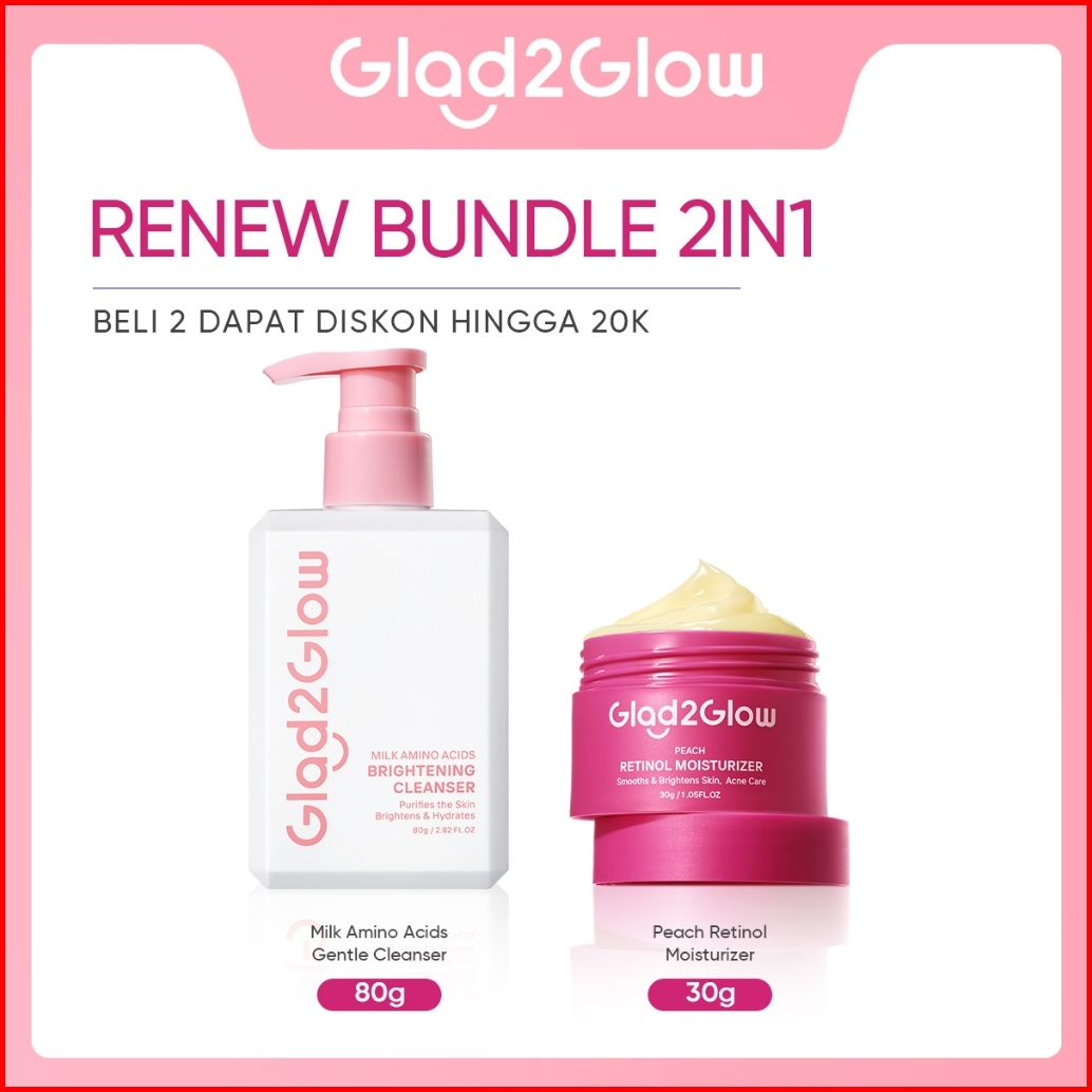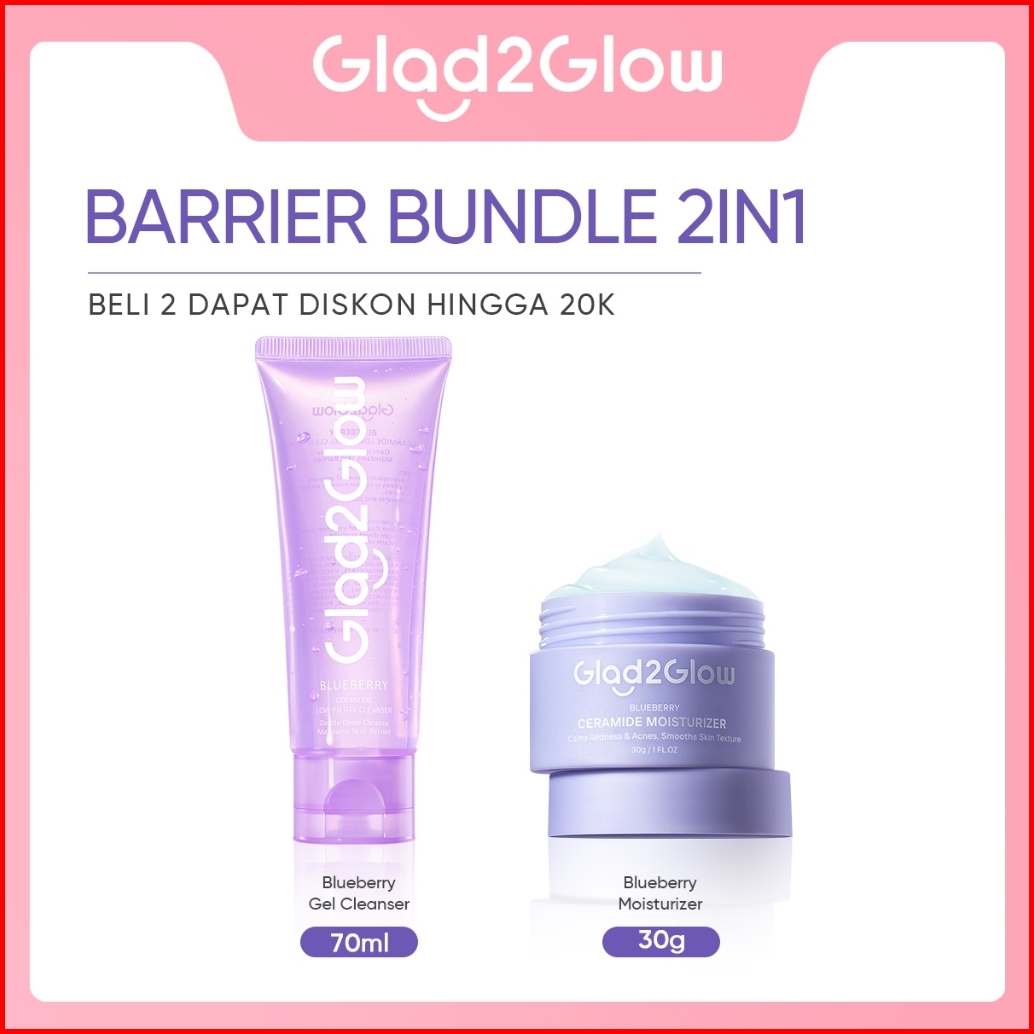 Glad2glow Skincare 2pcs Paket - Face Wash Moisturizer Sensitive Glowing Anti-acne Retinol Barrier Bright Blueberry Ceram
