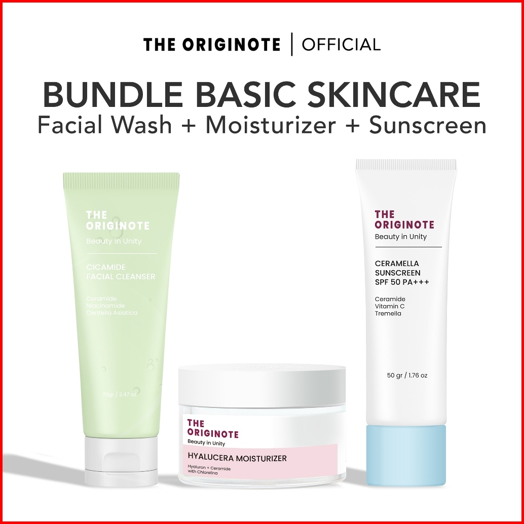 The Originote Bundle Basic Skincare - Facial Wash Moisturizer Sunscreen