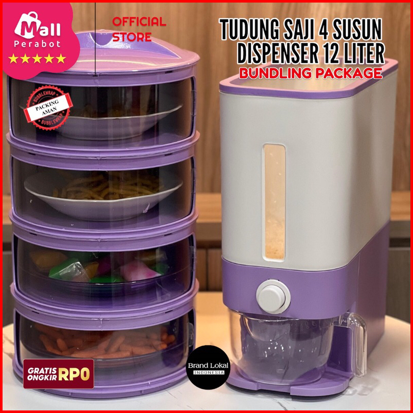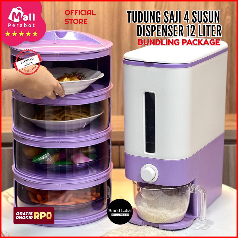 Mall Perabot Bundling Dispenser Beras 12 Liter Tudung Saji 4 Susun Tempat Penyimpanan Beras Rice Box Harga Termurah