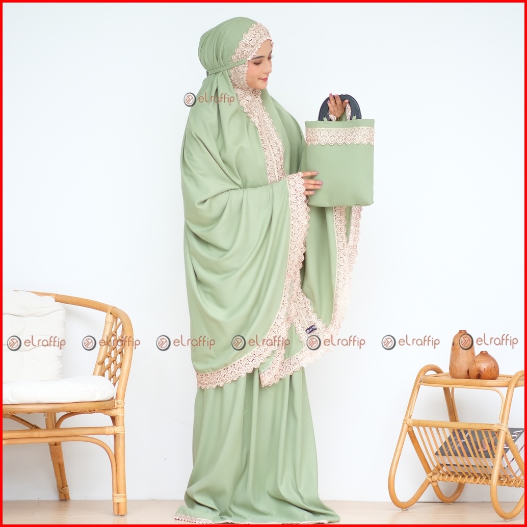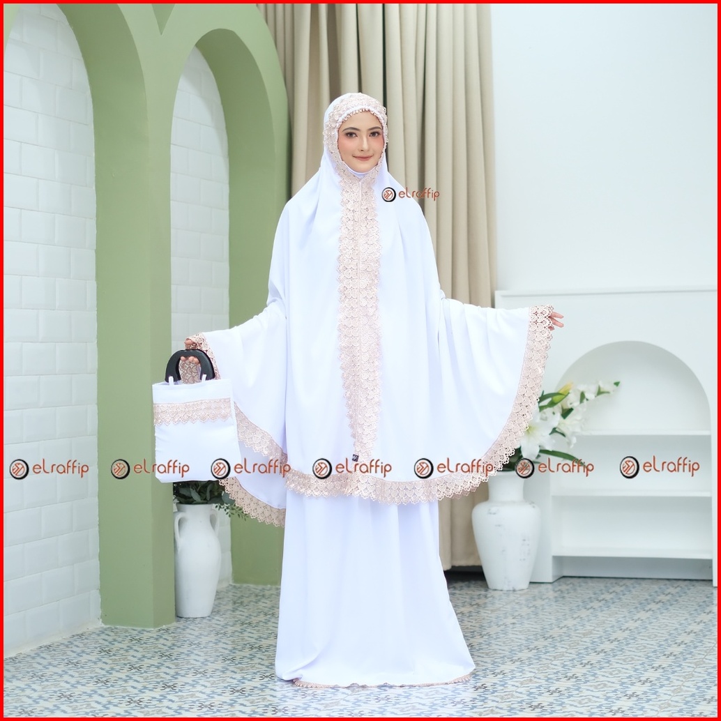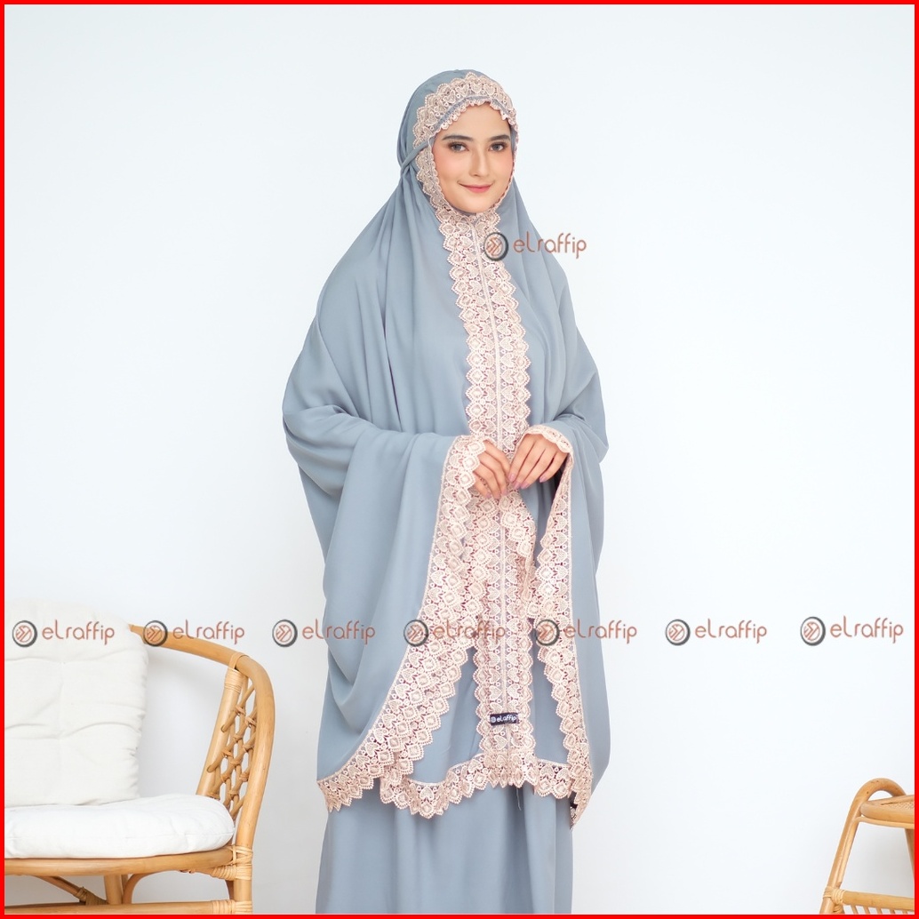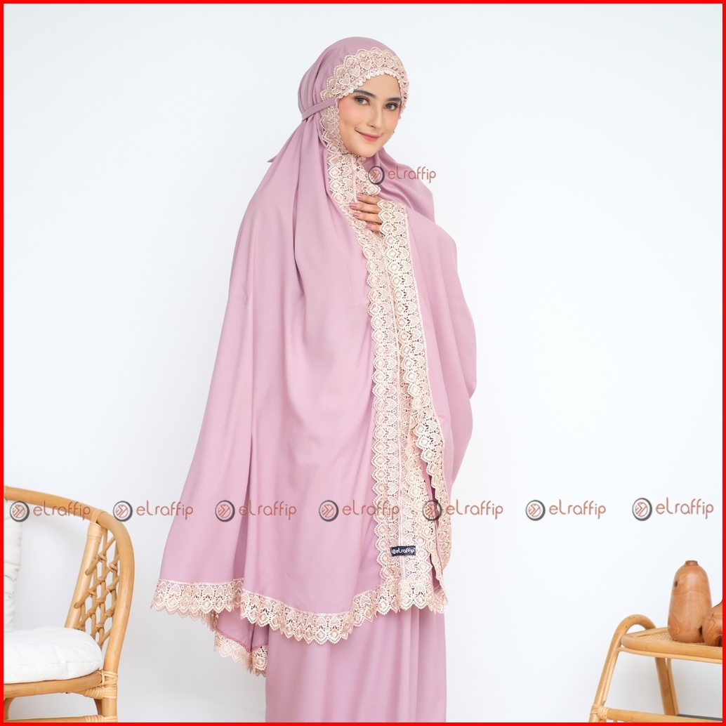 Elraffip-mukena Dewasa Katun Polos Kombinasi Renda Bordir