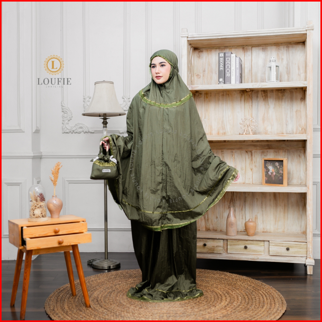 Loufie - Mukena Dewasa Parasut Pita Tali Kepang Polos Jumbo