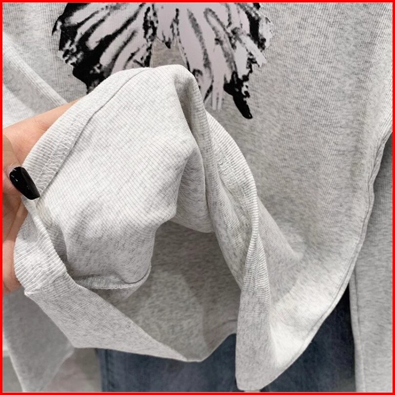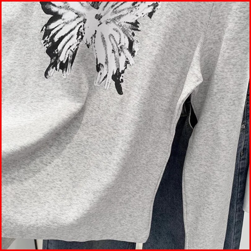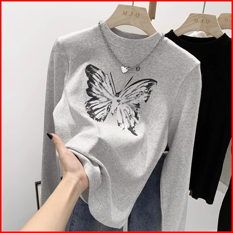 Kaos Premium Motif Kupu-kupu Lengan Panjang Leher Bulat