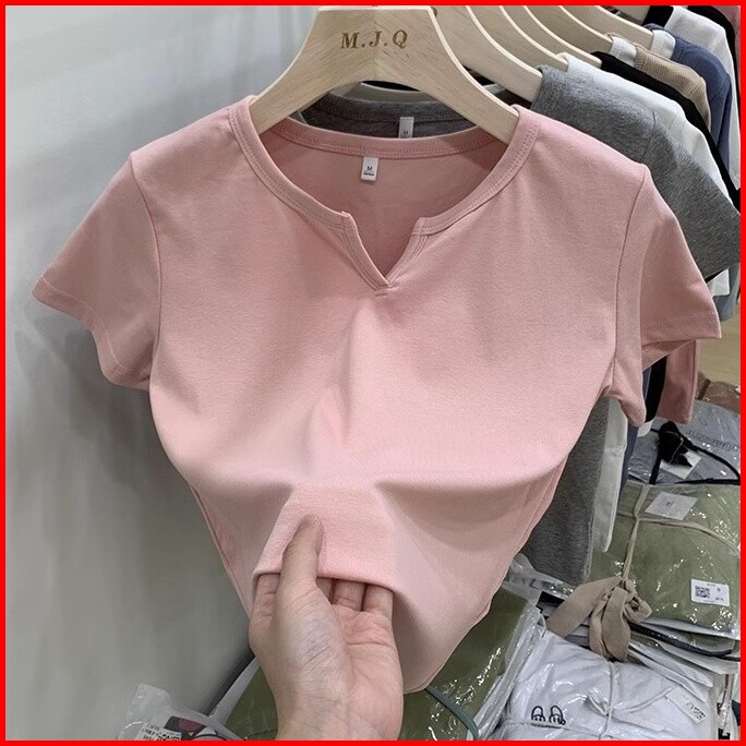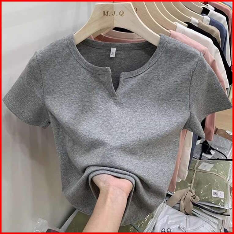 Kaos Katun Premium Lengan Pendek Kerah V Abu-abu