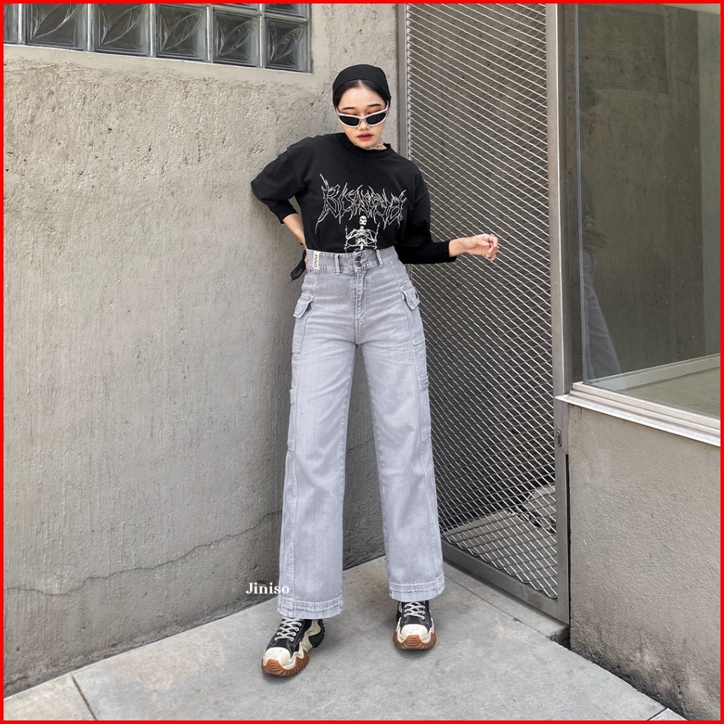 Jiniso - Cargo Baggy Highwaist Hands Up Jeans