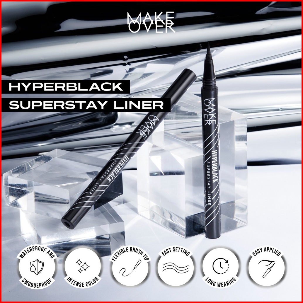 Make Over Hyperblack Superstay Liner - Eyeliner Best Seller Hitam Pigmented Waterproof Smudgeproof Tahan Seharian Tidak