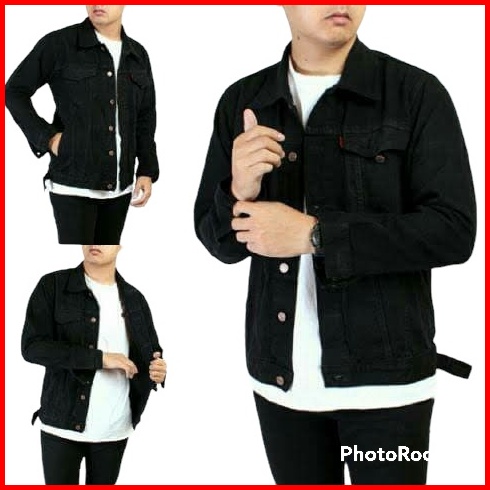 Jaket Jeans Pria Jumbo Big Size Jacket Black Denim Cowok Snow Black Sandwash Hitam