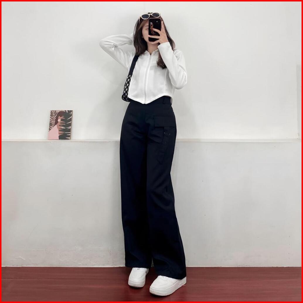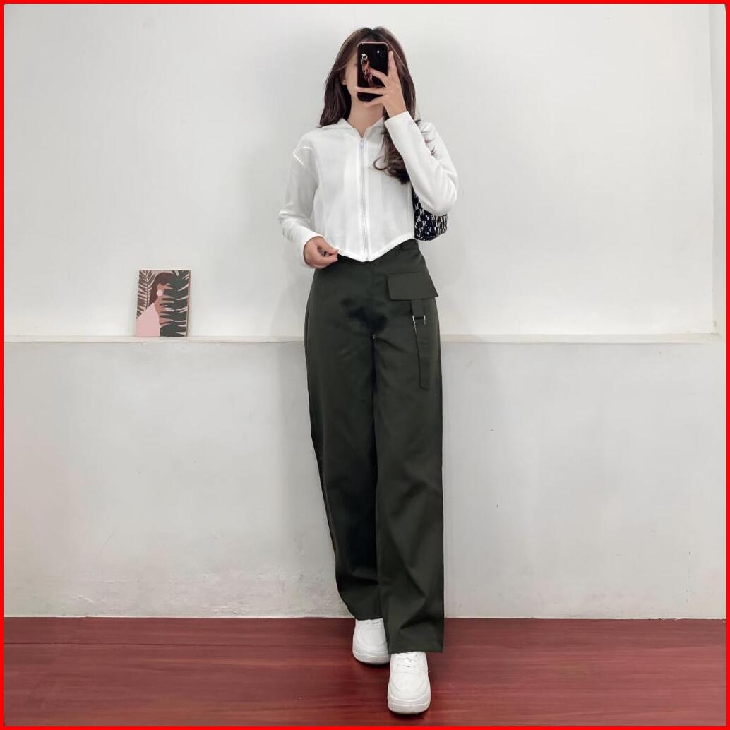 Orimoza Celana Cargo Katun Drill Highwaist Loose Pants Rubby
