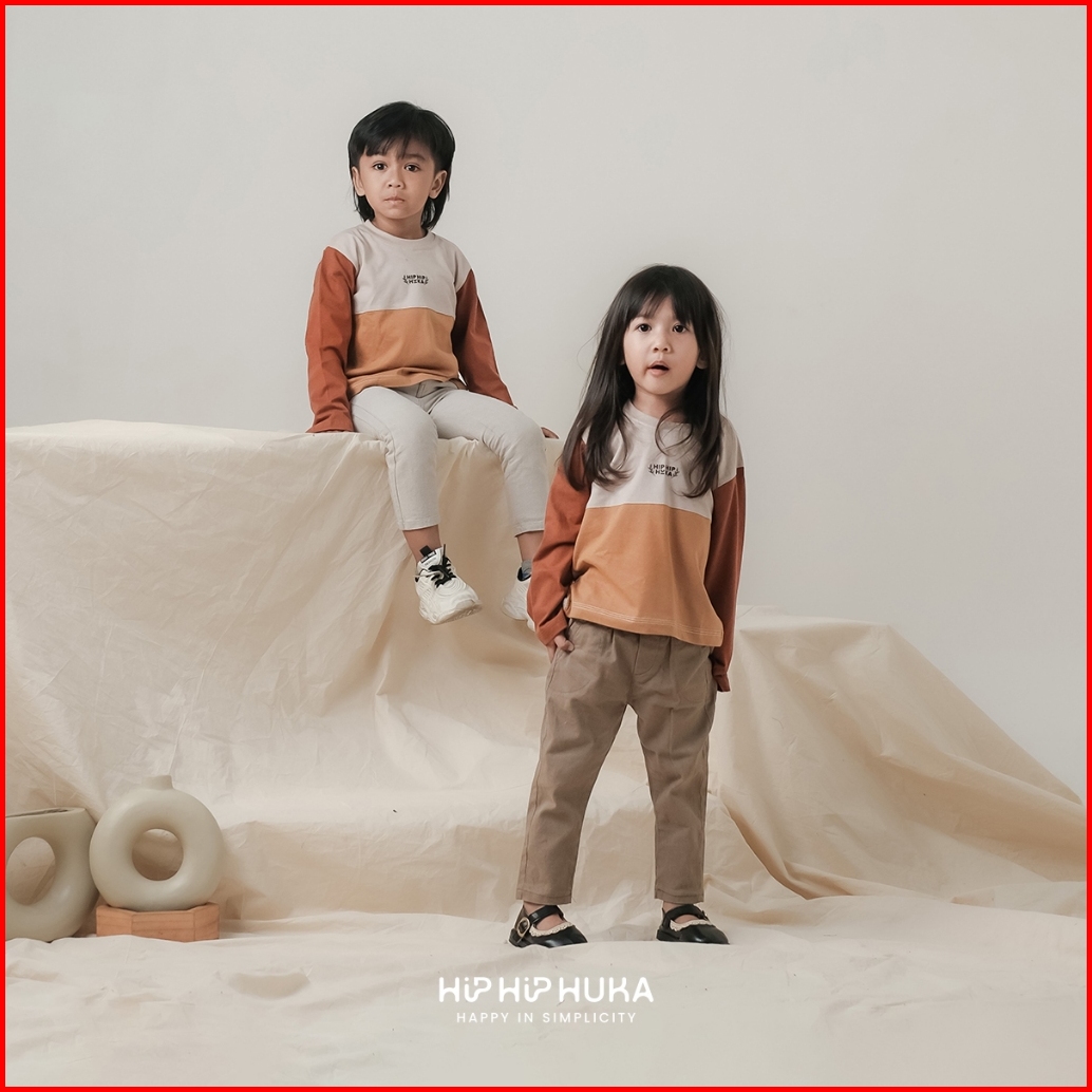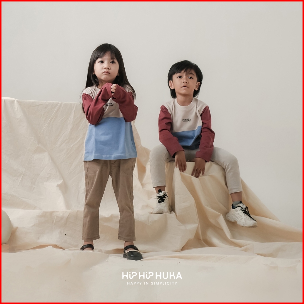 Hiphiphuka - Atasan Kaos Anak Laki Perempuan 1-5 Tahun Lengan Panjang Polos Kombinasi Asoka Series