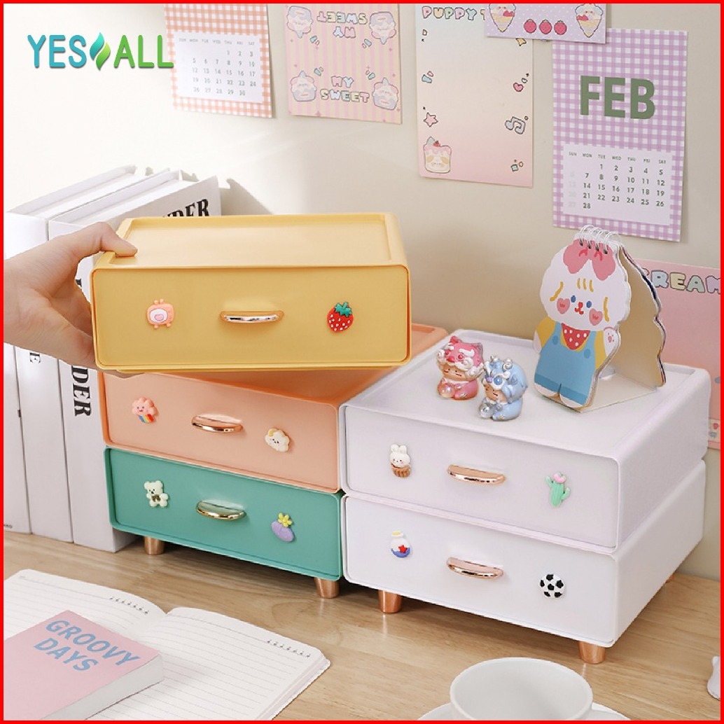 Yesall Rak Susun Serbaguna - Rak Kosmetik Kotak Penyimpanan Rak Skincare Rak Serbaguna Tempat Make Up Rak Kosmetik Aesth