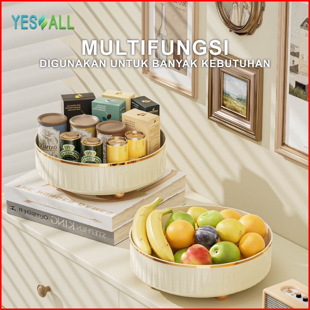 Yesall Rak Putar Ivory - Kotak Penyimpanan Rack Kosmetik Wadah Buah Bumbu Dapur Estetik Snx008004