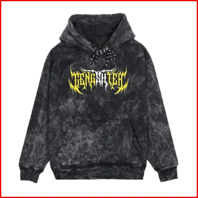 Hipokrit Store Sweater Gengster Washed Unisex Hoodie Metal Populer Fullover Tiedye Black Sandwash 5 Original Quality Cot