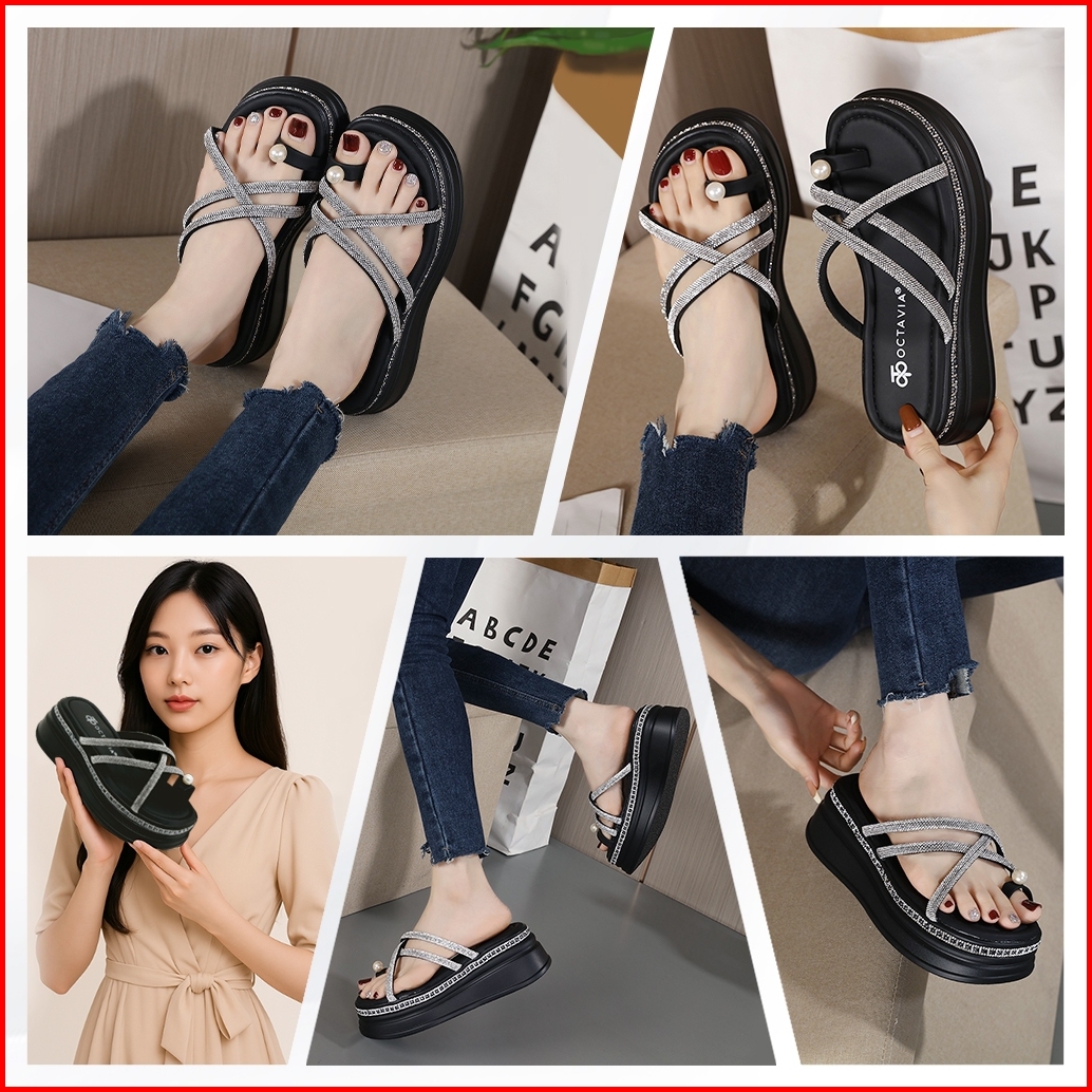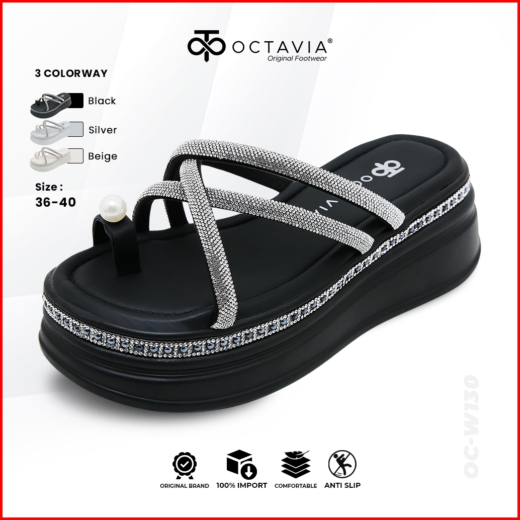 Original Octavia Sandal Slide Slip On Wedges Heels Wanita Oc-w130