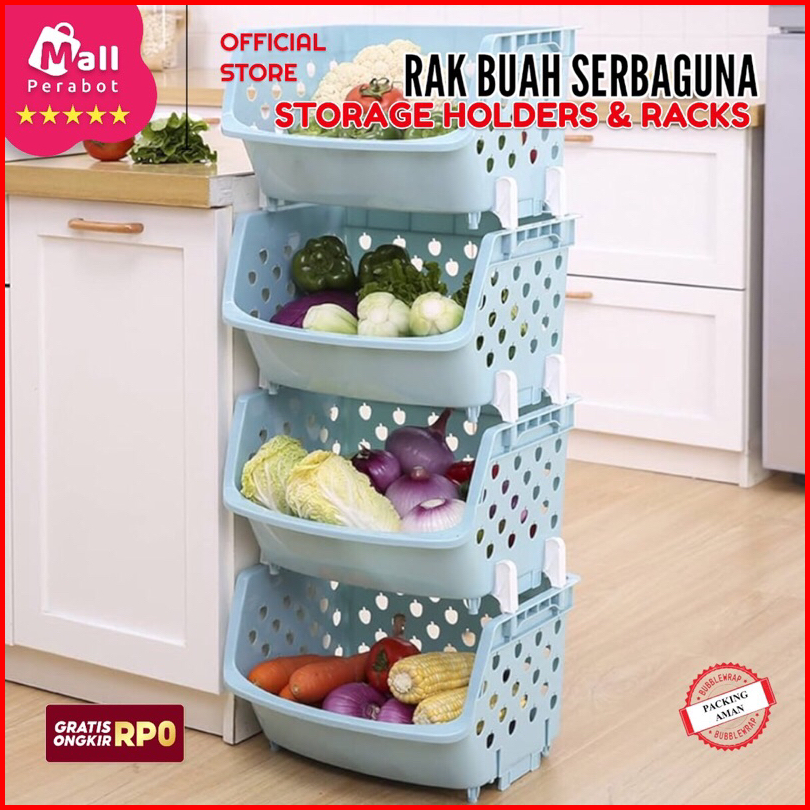Mall Perabot Rak Dapur Susun Rak Apel Laundry Basket Rak Serbaguna 4 Tingkat Rak Keranjang Mainan Bayi