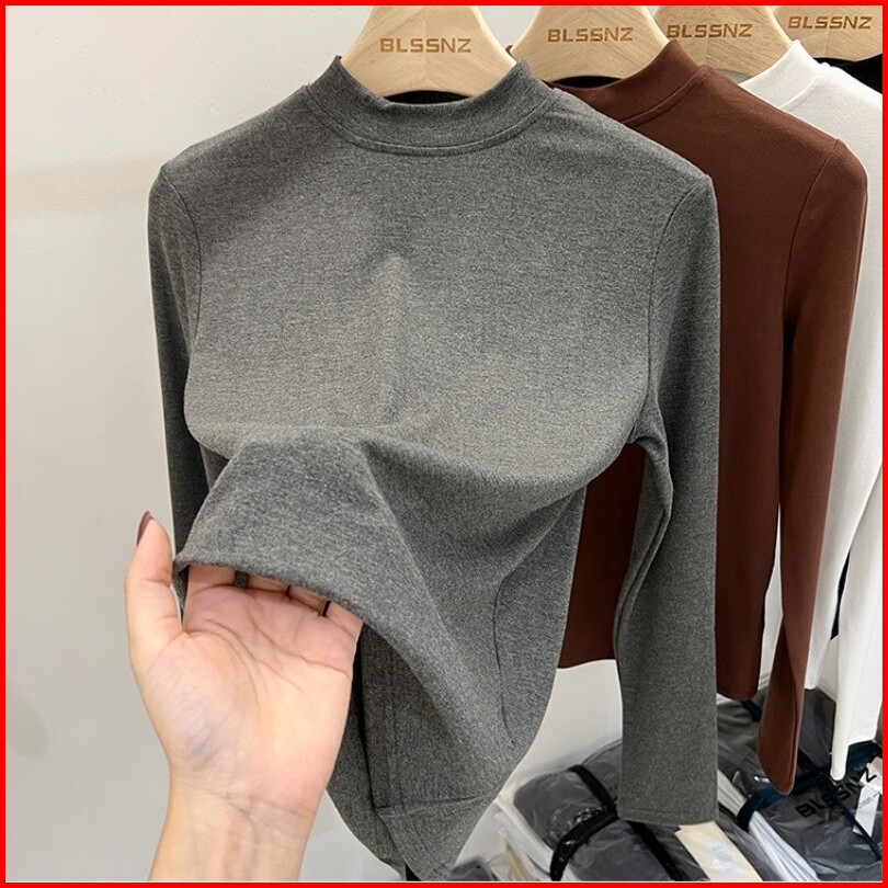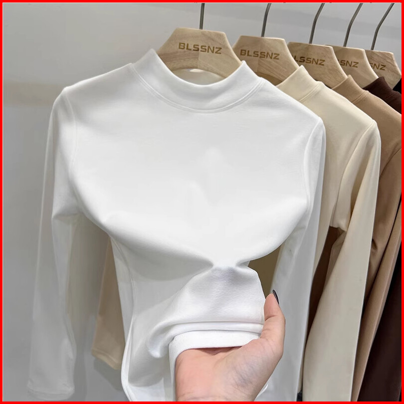 Kaos Berulir Lengan Panjang Setengah Turtle Neck Aprikot
