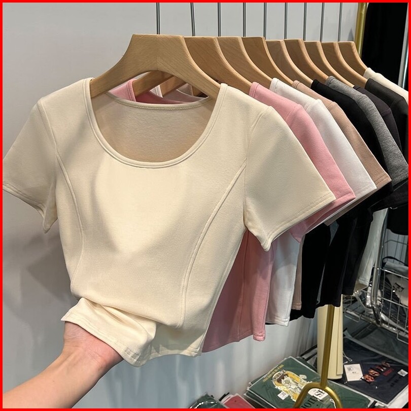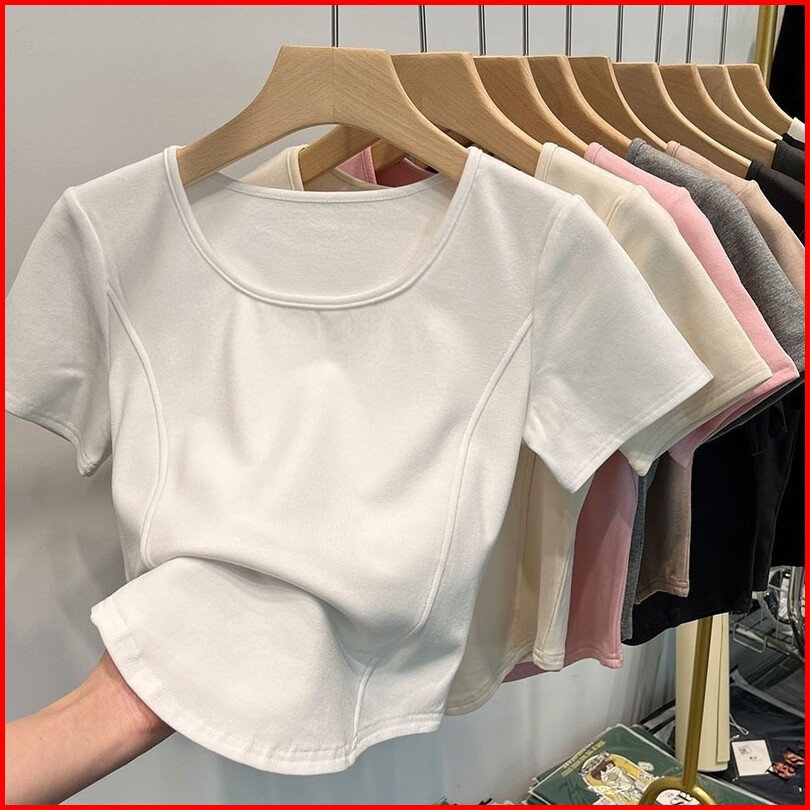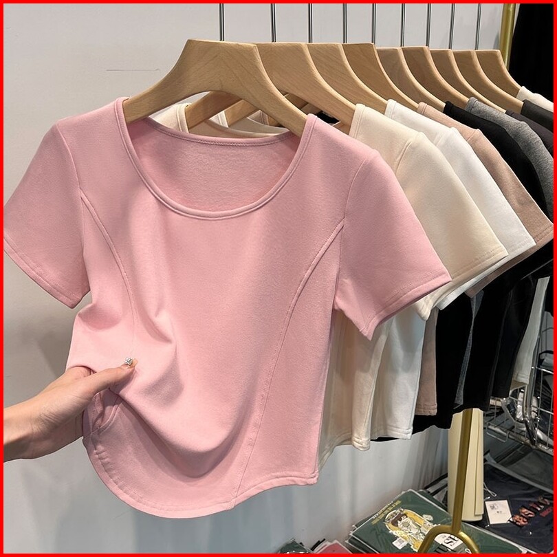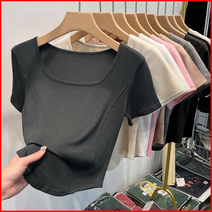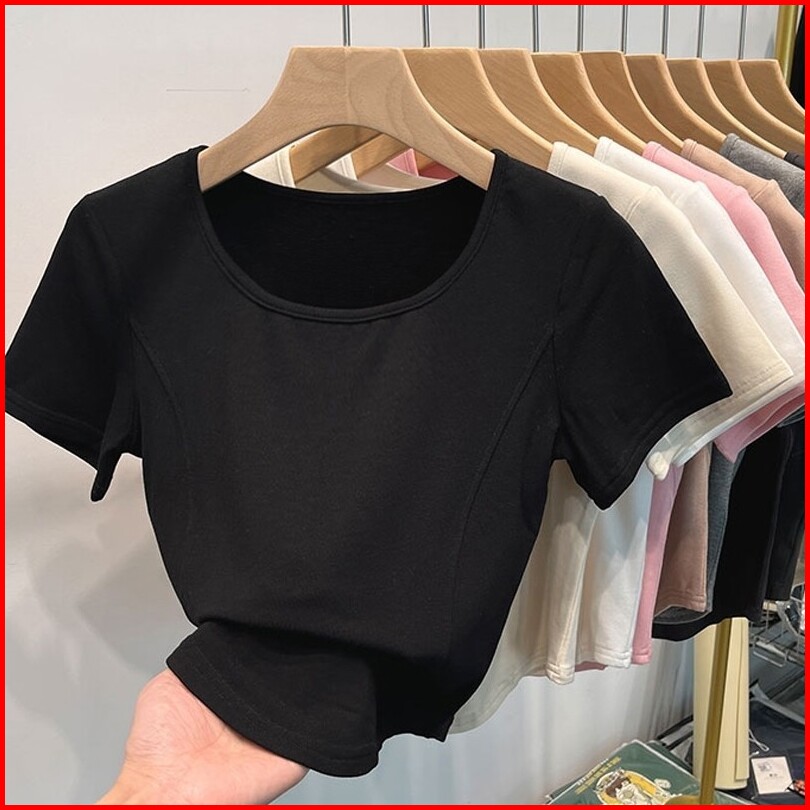 T-shirt Pendek Berleher U Besar Kaos Multiwarna Kaos Korea Dongdaemun Warna Polos