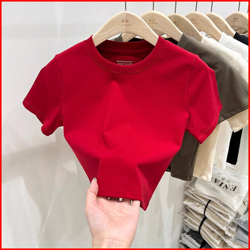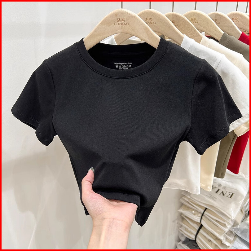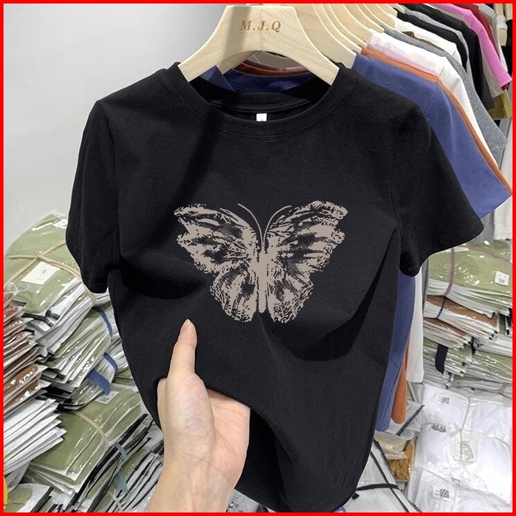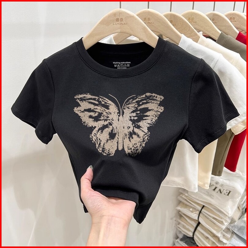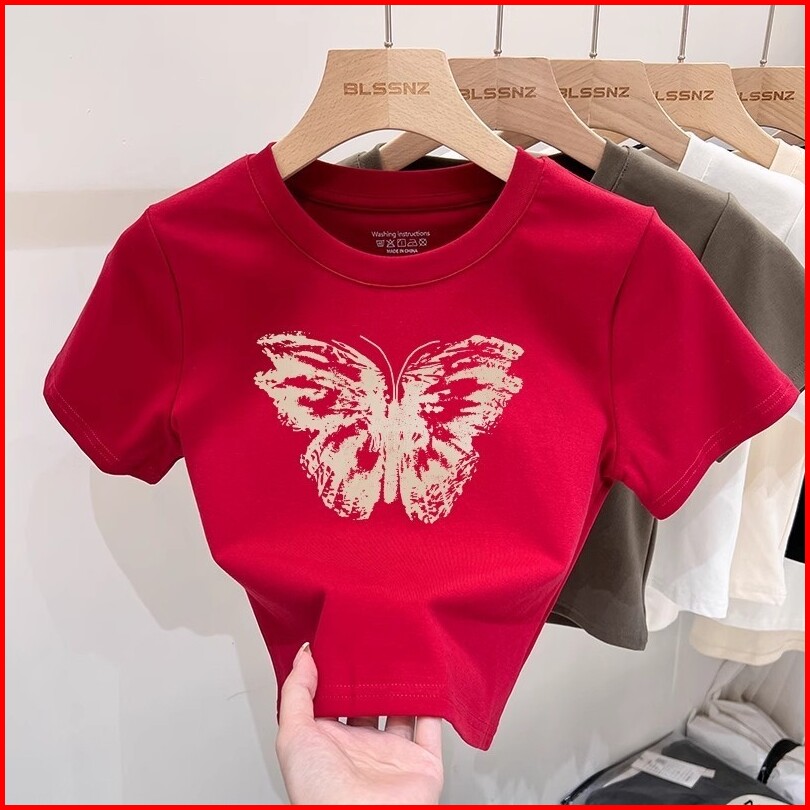 Kaos Pendek Bermotif Kupu-kupu Crop Top Wanita