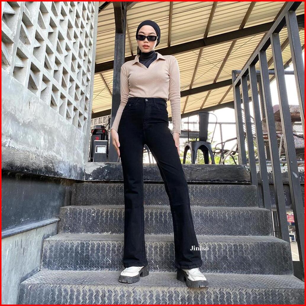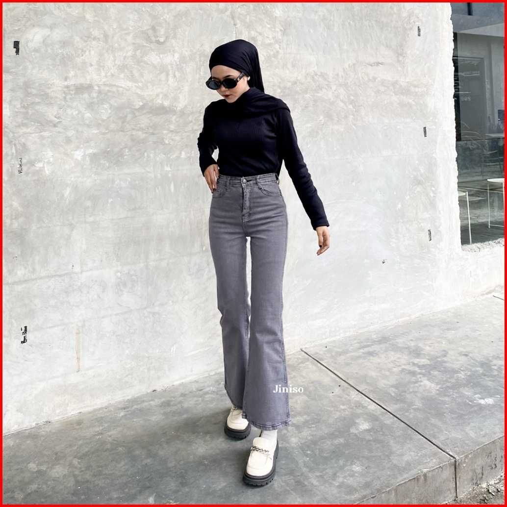 Jiniso - Highwaist Stretch Cutbray Pocket Jeans Hangout