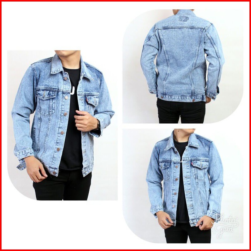 Jaket Jeans Denim Pria Jumbo Big Size Cowok Snow Black Sandwash Hitam Oversize Premium Quality