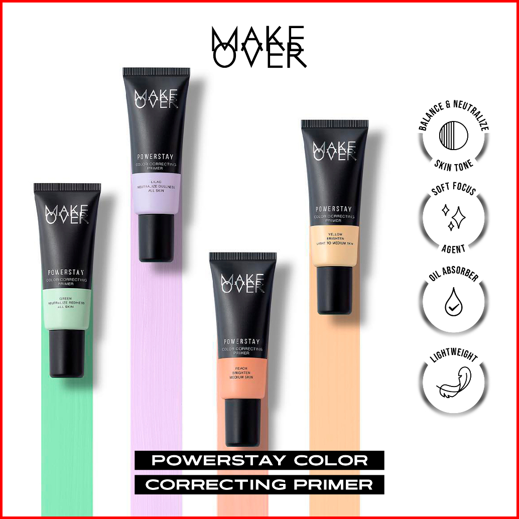 Make Over Powerstay Color Correcting Primer - Primer Menetralkan Warna Wajah Mencerahkan Menghilangkan Kemerahan Tahan L