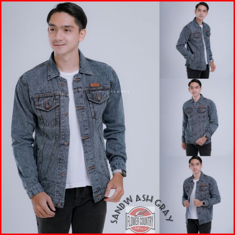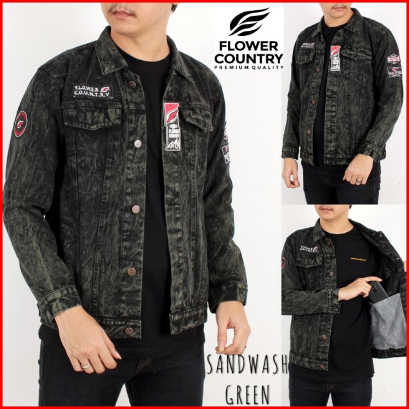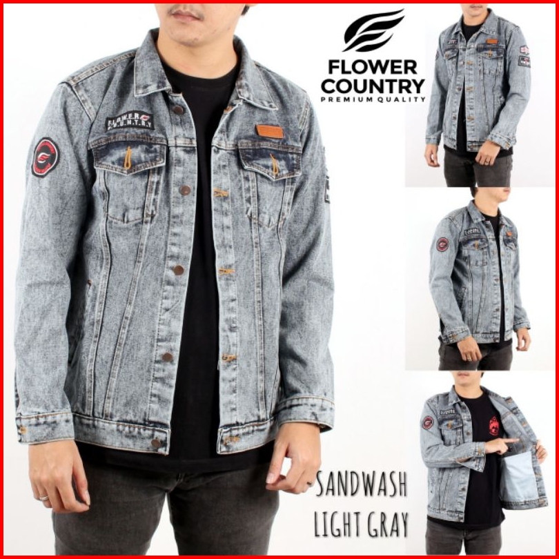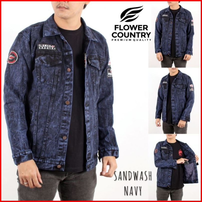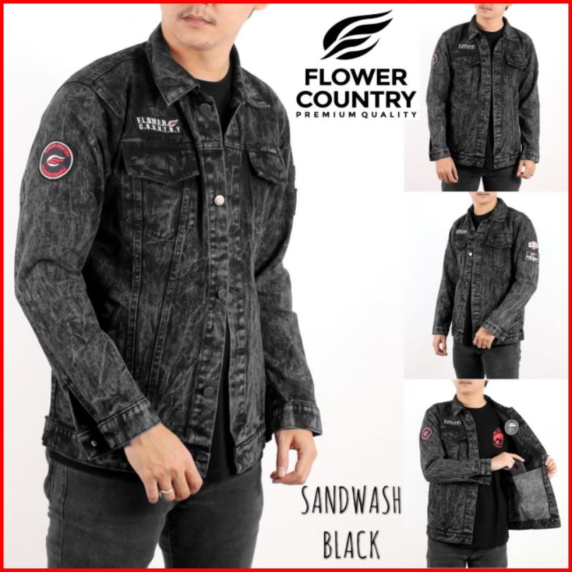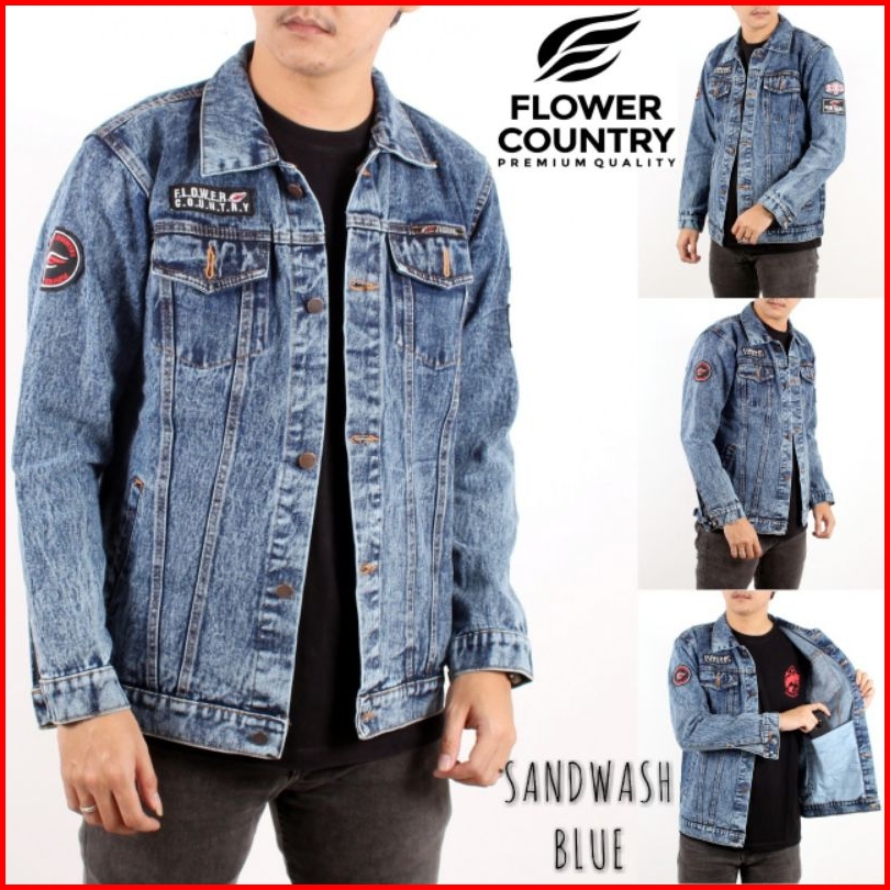Jaket Jeans Bordir Sandwash Pria Original Flower Country Size M L Xl