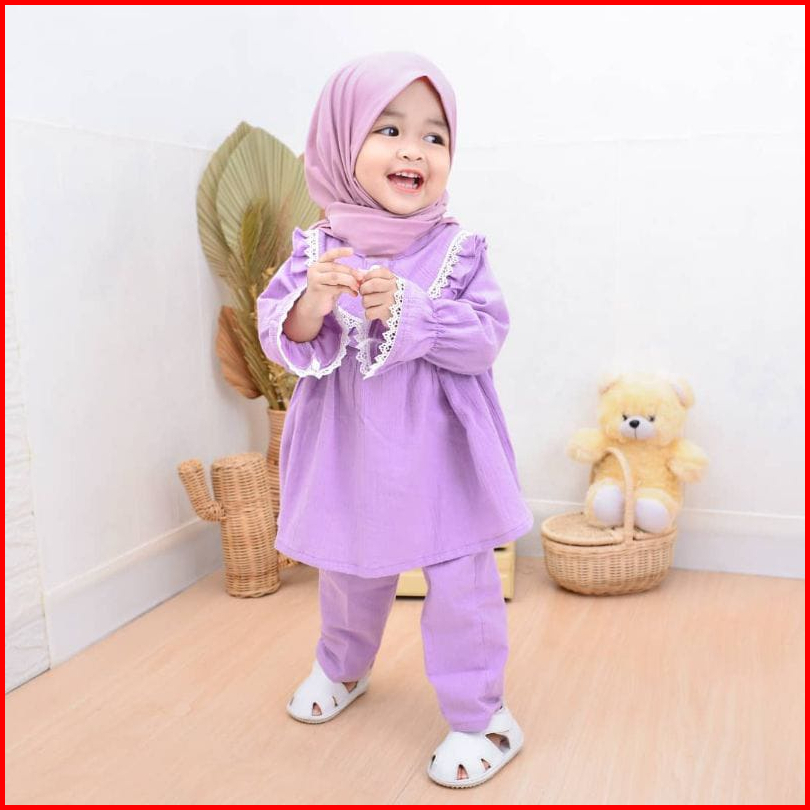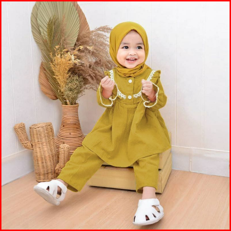 Gamis Bayi Perempuan Gamis Anak Perempuan Set Hijab Baju Anak 1-2 Tahun Baju Anak One Set Gamis Mikaila Kids