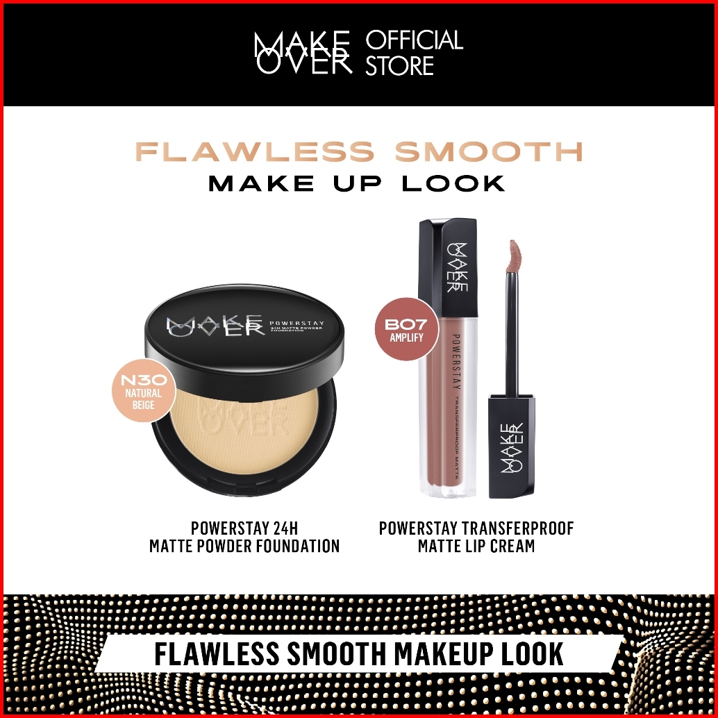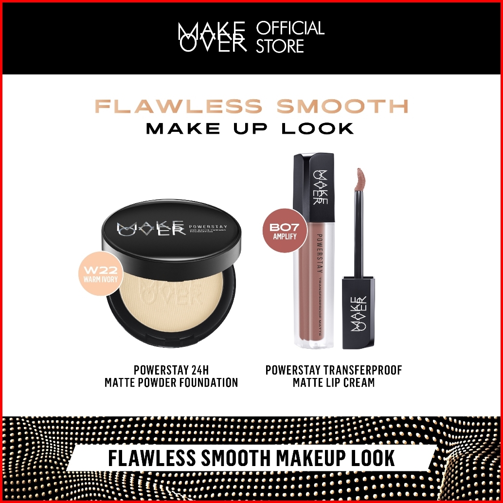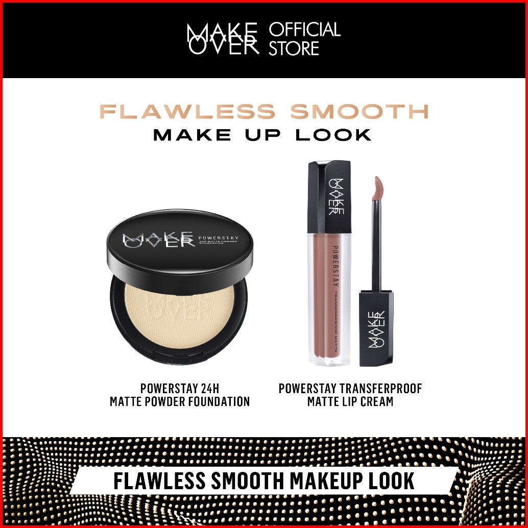Make Over Flawless Smooth Makeup Look - Powerstay 24h Matte Powder Foundation Transferproof Matte Lip Cream - Paket Beda