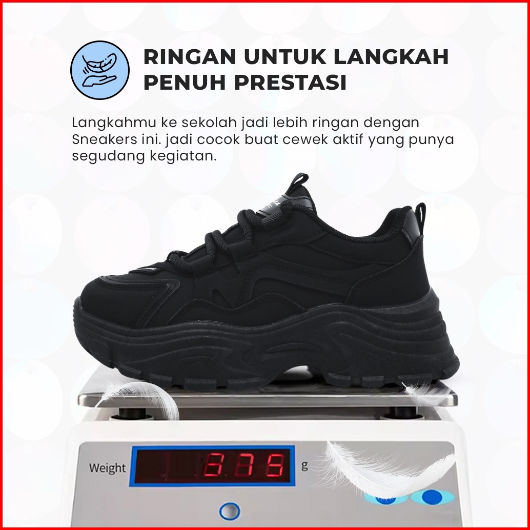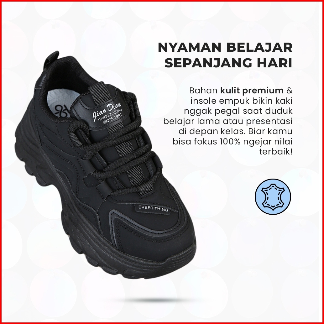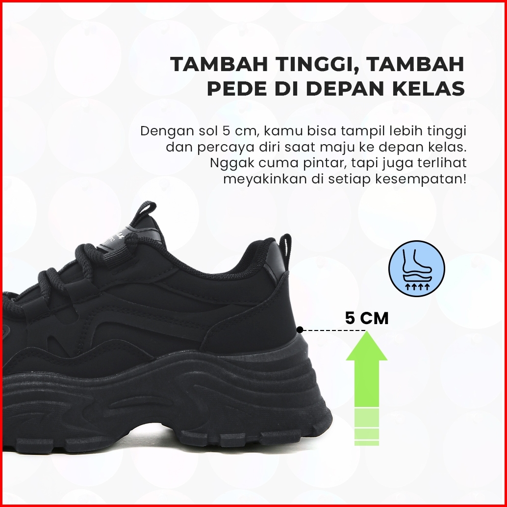 Back To School Octavia Sepatu Sekolah Hitam Wanita Sneakers Wanita Highsole 5 Cm Wedges Kulit Premium Oc-8820