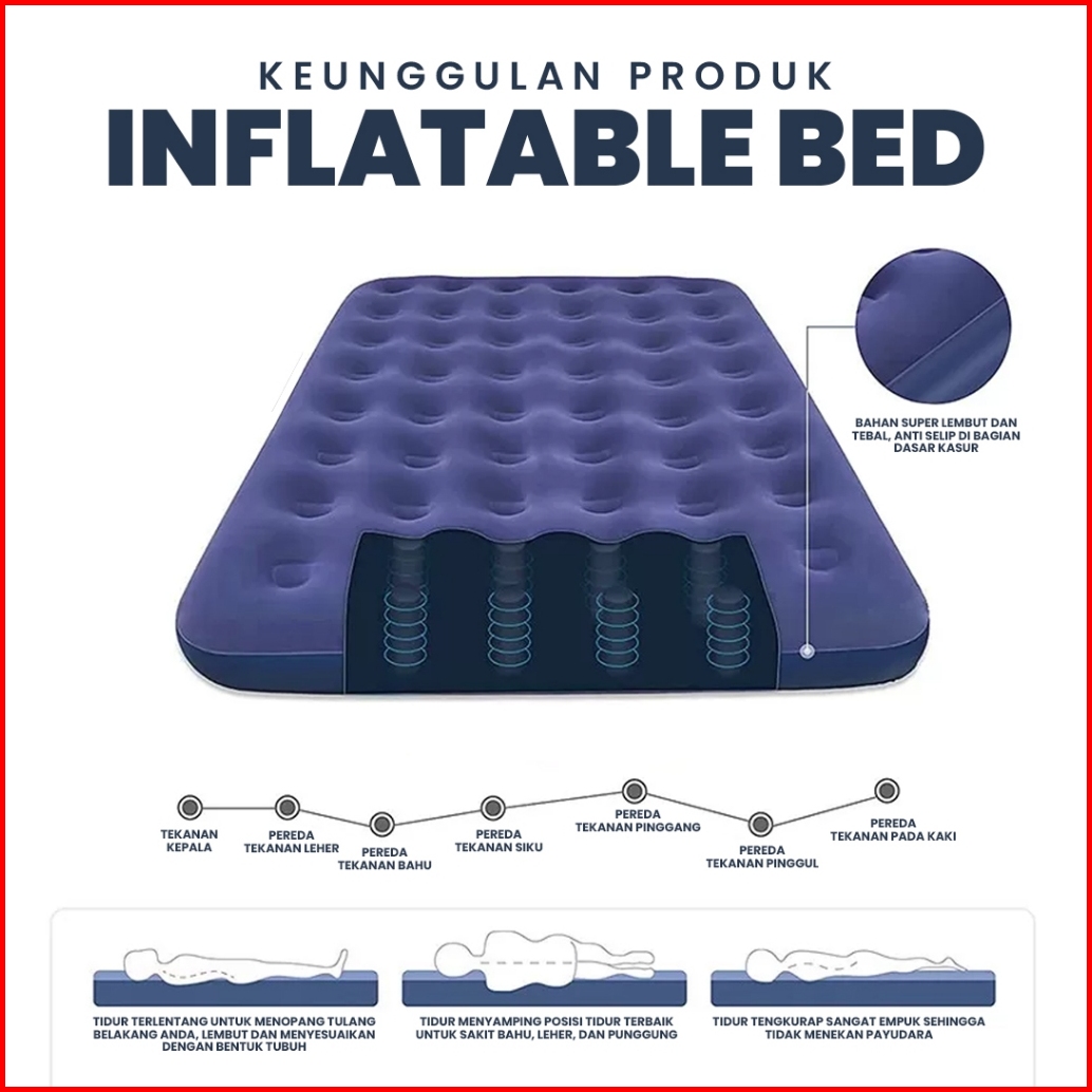 Alobon Kasur Angin Air Bed Queen Size Kasur Portable Biru Kasur Angin Double