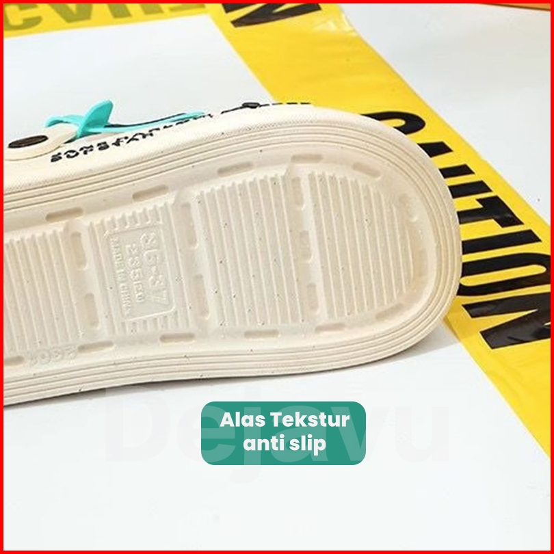 Dejavu Sandal Fuji Wanita Wedges Jibbitz Kekinian Sandal Baim Rumah Karet Jelly Sepatu Slop Anti Slip Hsn171