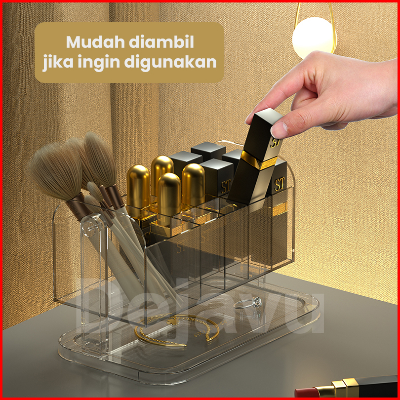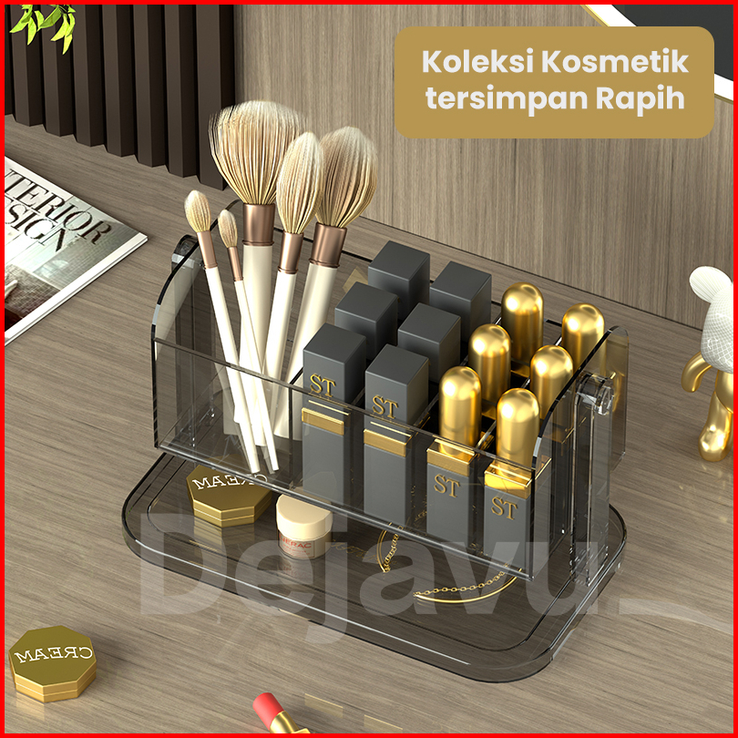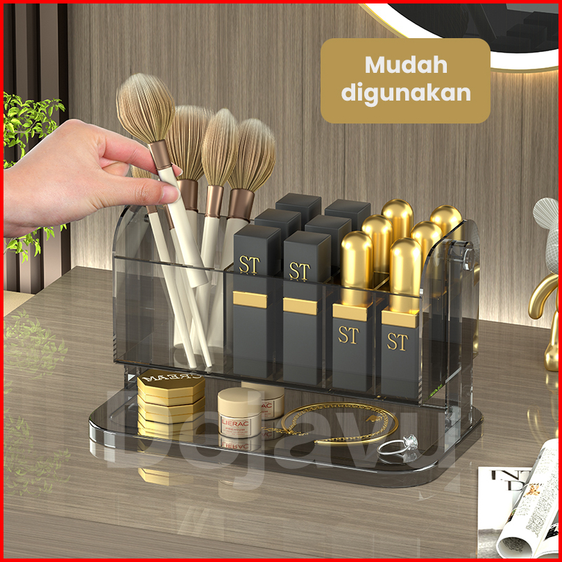 Dejavu Rak Kosmetik Akrlik Transparan Tempat Lipstick Kotak Penyimpanan Brush Alat Make Up Holder Organizer Meja Rias Hs