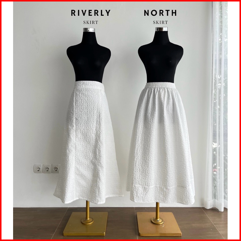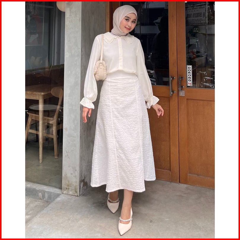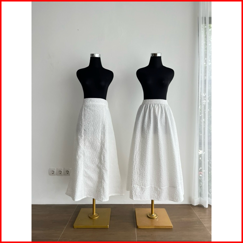 Fwdaily - Riverly North Skirt Basic Skirt - Embos Skirt - White Skirt - Formal Skirt - Rok Pias Flare Maxi - Koleksi Har