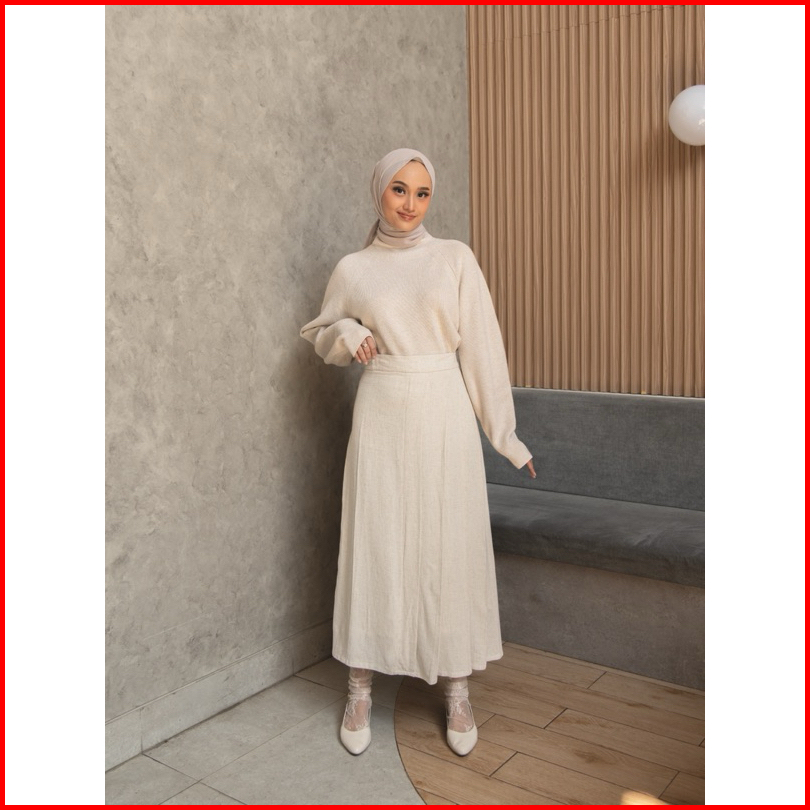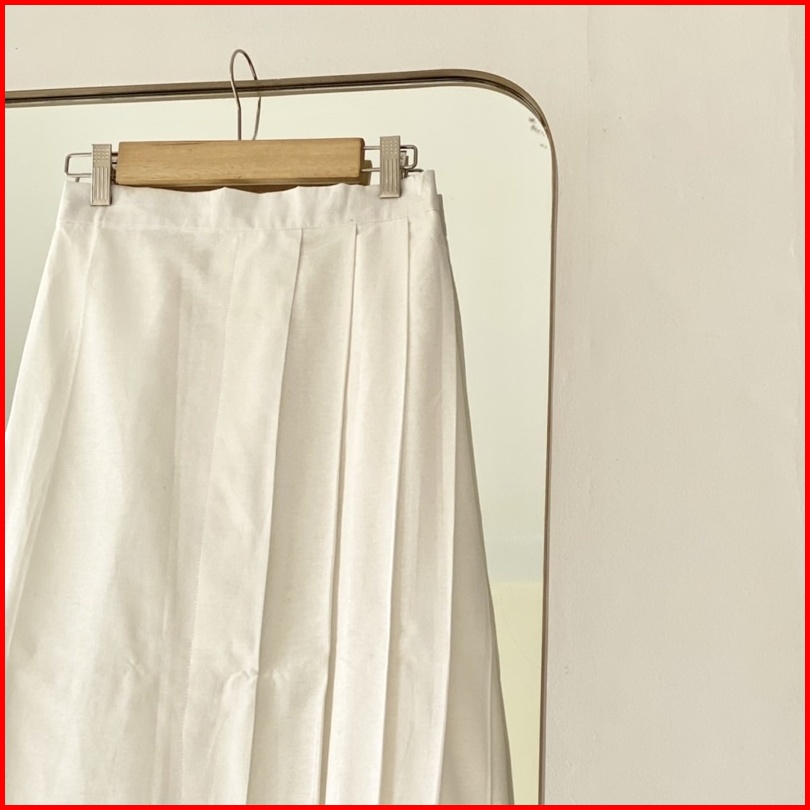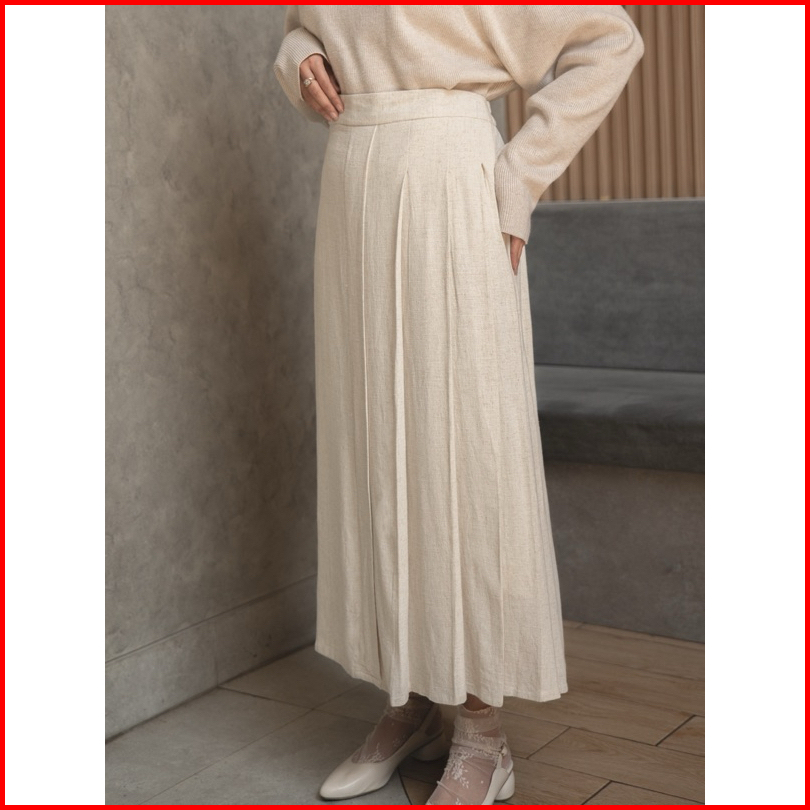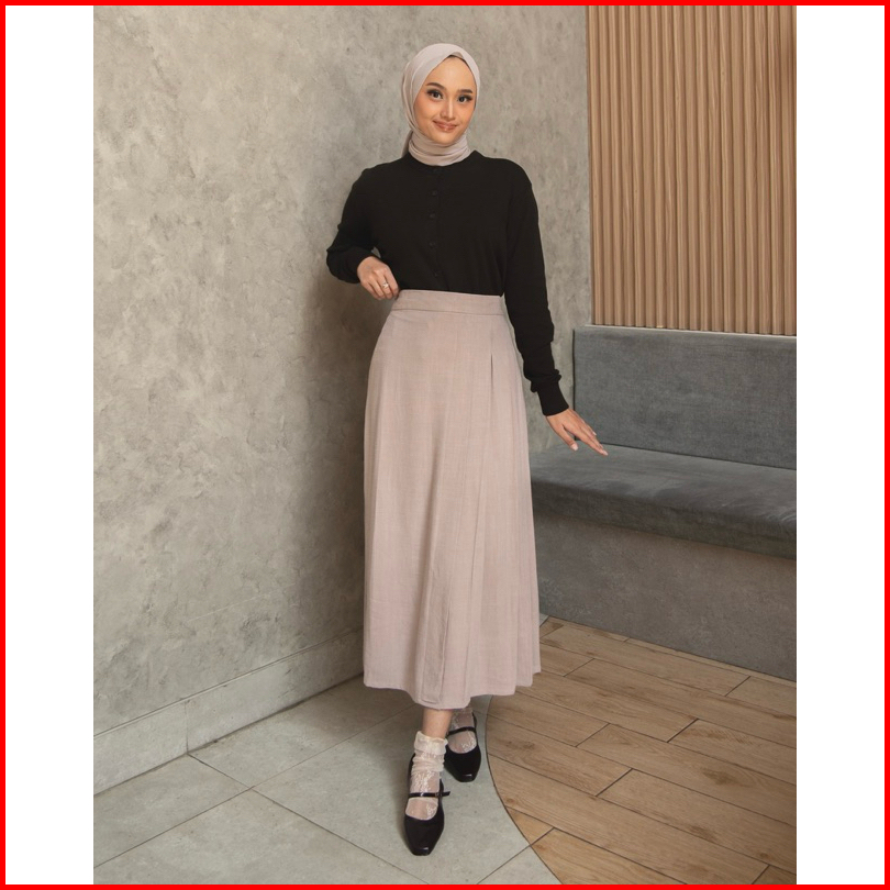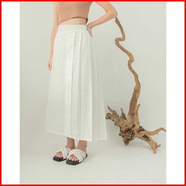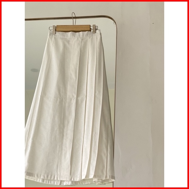 Fwdaily - Kirei Skirt Rok Lipit Polos Midi Maxi Premium Casual Basic Skirt - Rok Linen - Linen Skirt - Rok Korean Wanita