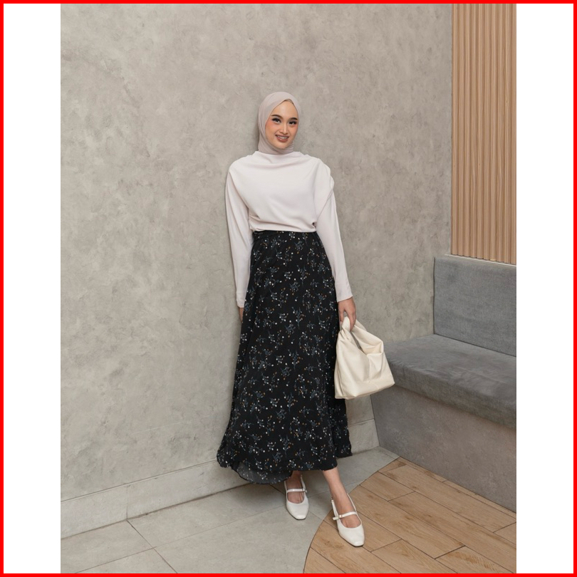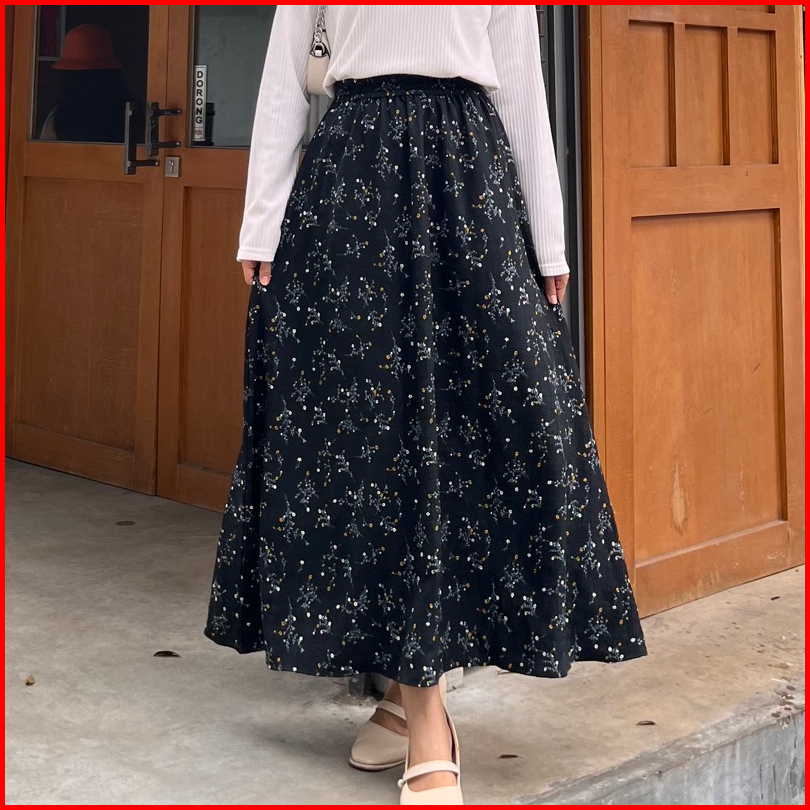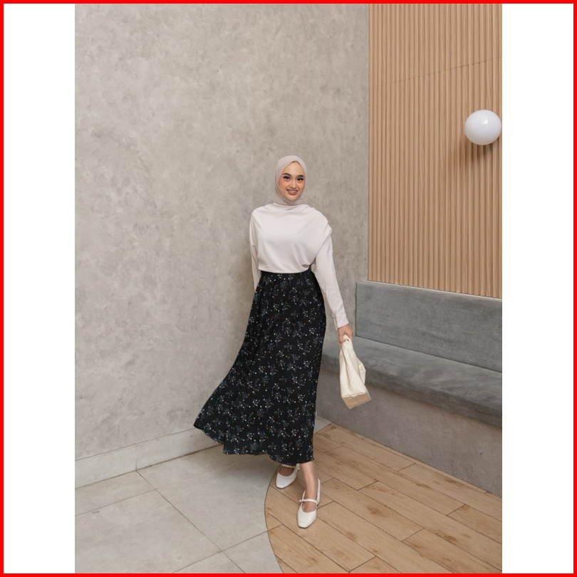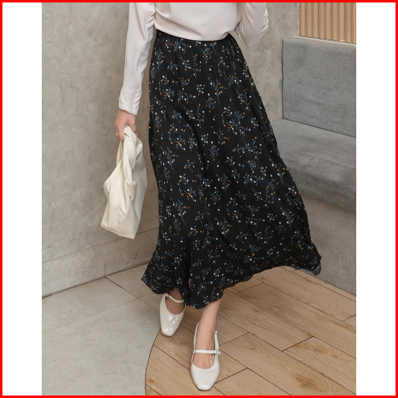 Fwdaily - Sierra Skirt Rok Motif Cringkle - Korean Skirt Maxi - Floral Skirt - Muslim