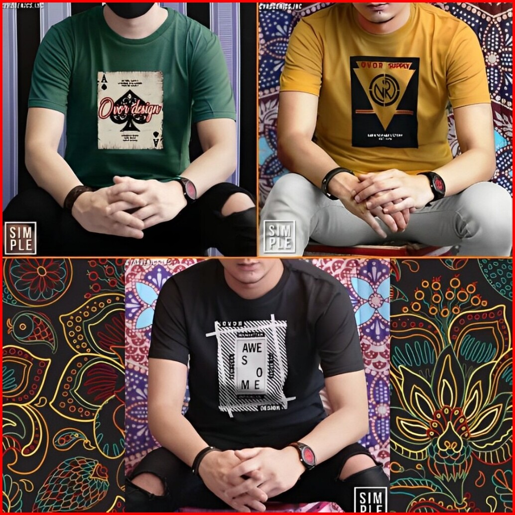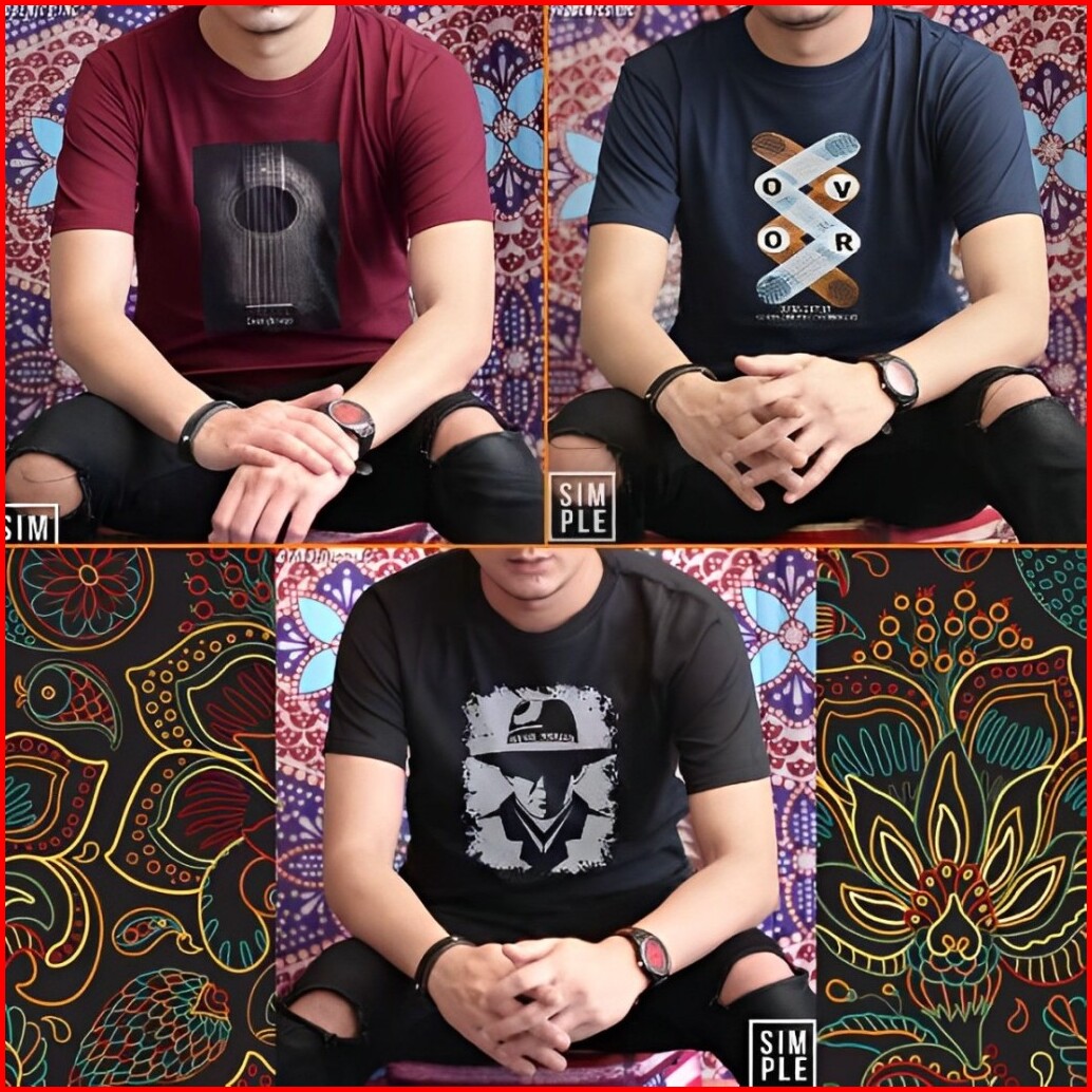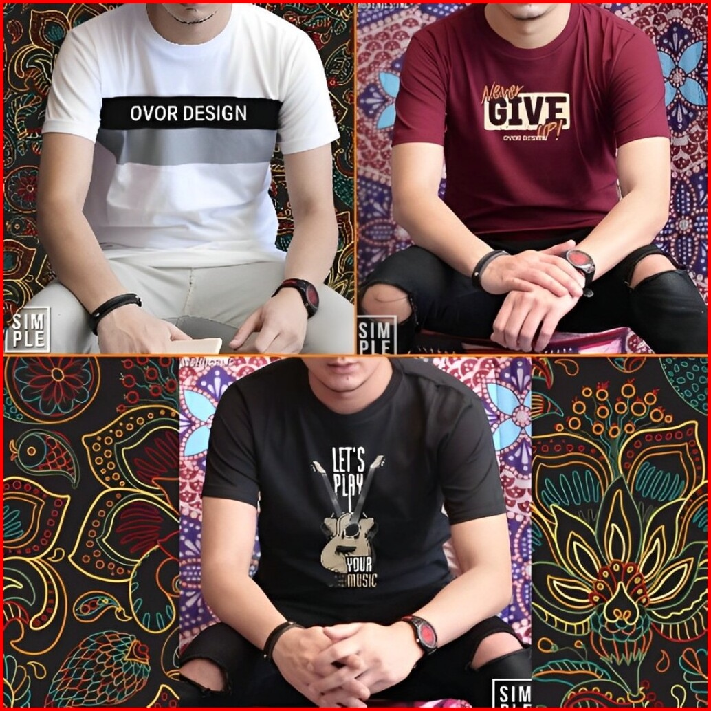 Isi 3pcs Kaos Distro Kaos Pria Lengan Pendek Kaos Pria Distro Kaos Oblong Bahan Katun