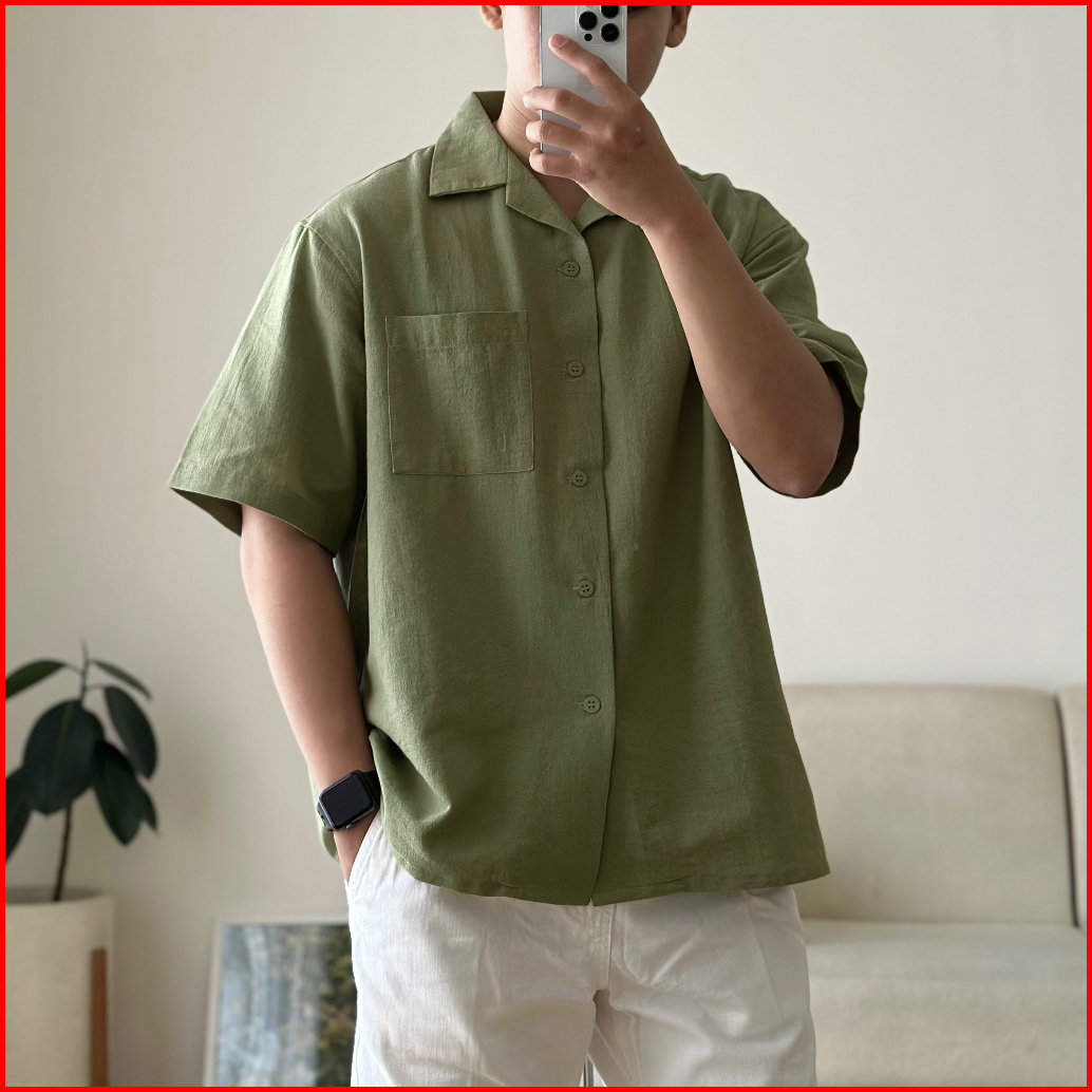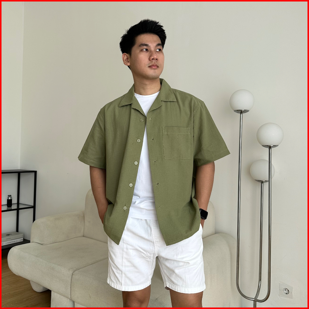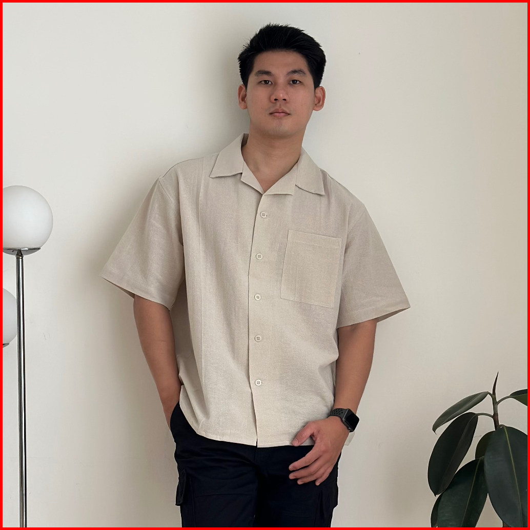 Cozyclub Cuban Bowling Boxy Oversized Linen Shirt Kemeja Linen Bowling Polos Pria Kerah Terbuka Lengan Pendek 81