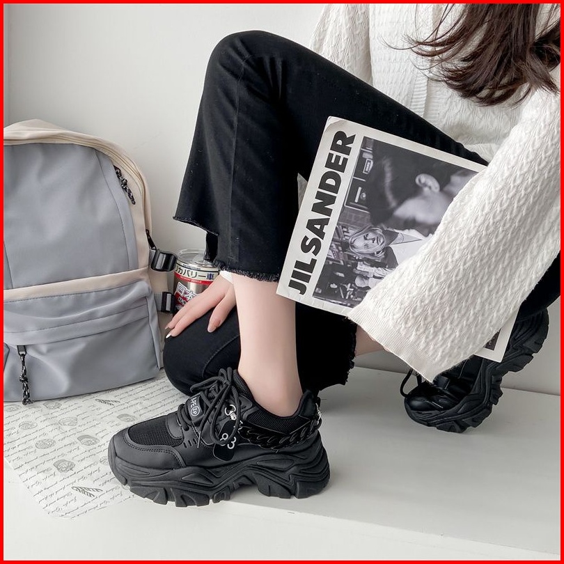 Asnk Sepatu Sneakers Putih Wanita Korea Sport Shoes Hitam H-921