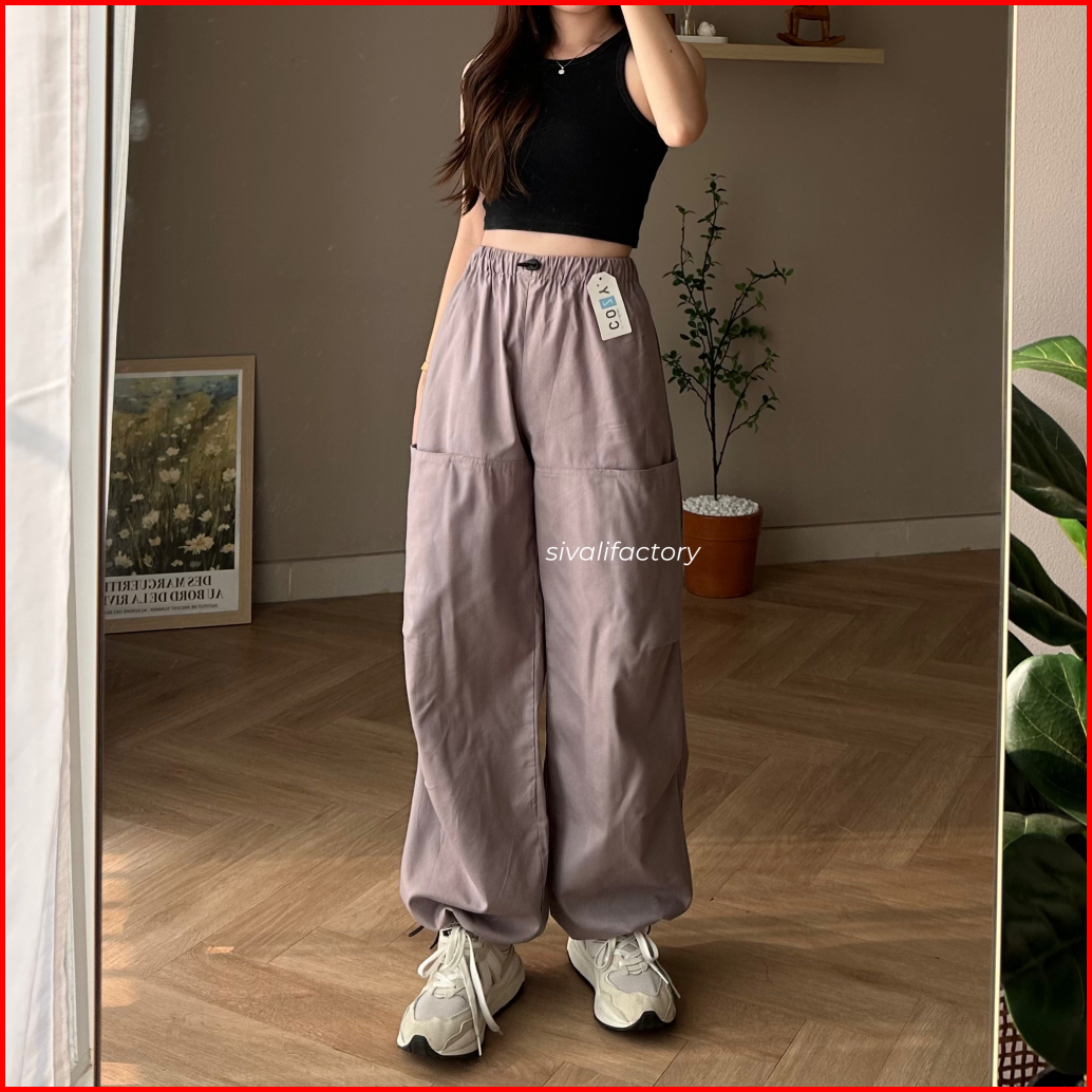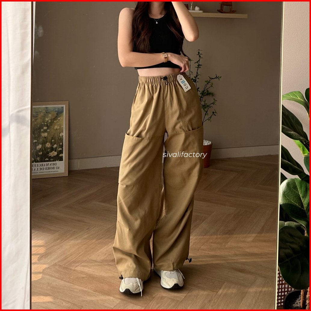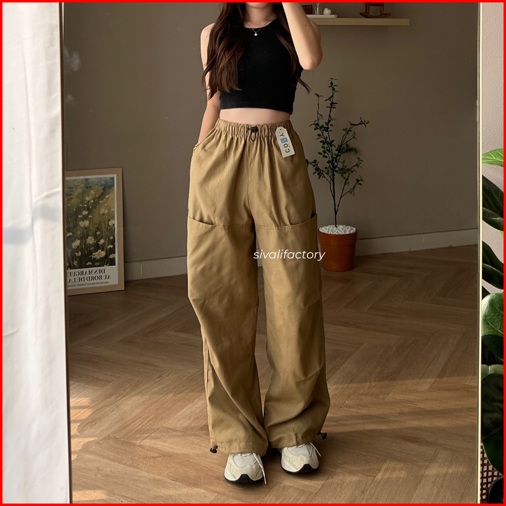 Sivali Jason Baggy Pants - Celana Kulot Jogger Cargo Serut Highwaist - Kargo Wanita