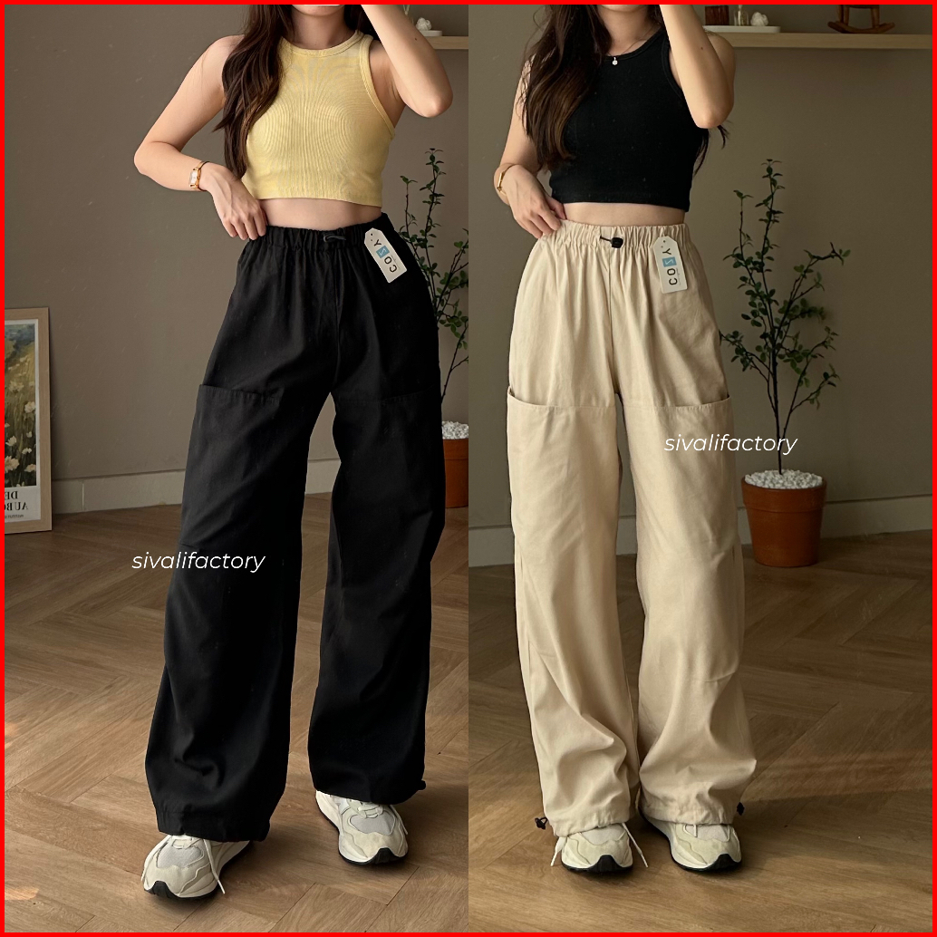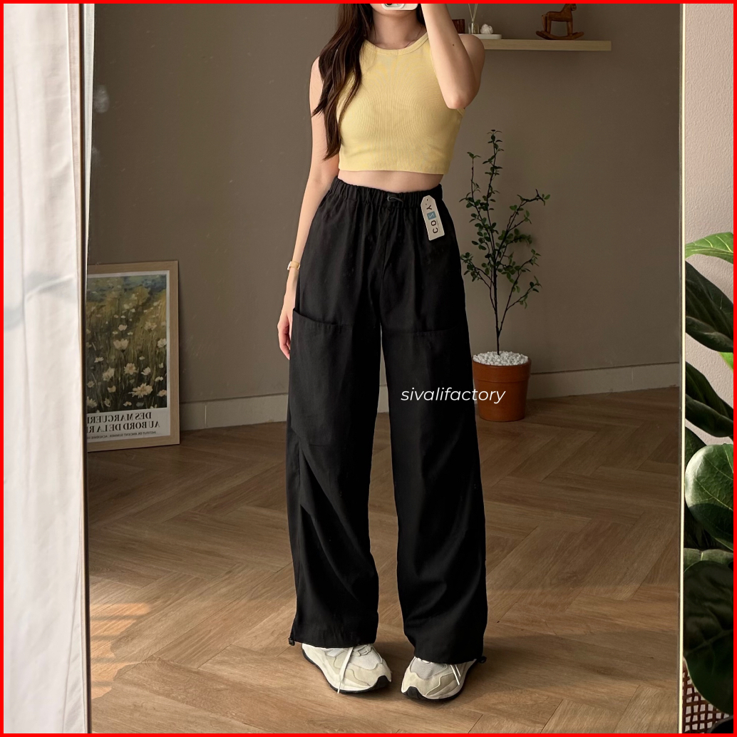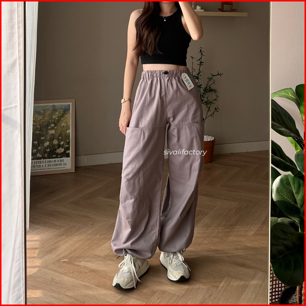 Sivali Jason Baggy Pants - Celana Kulot Jogger Cargo Serut Highwaist - Kargo Wanita