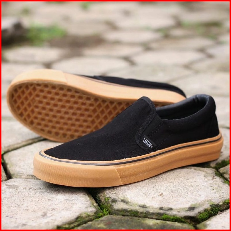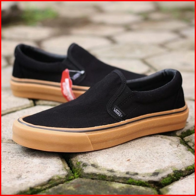 Promo Sepatu Vans Old School Sepatu Slip On Black Gum Sepatu Pria Wanita Terlaris Slip On Gum