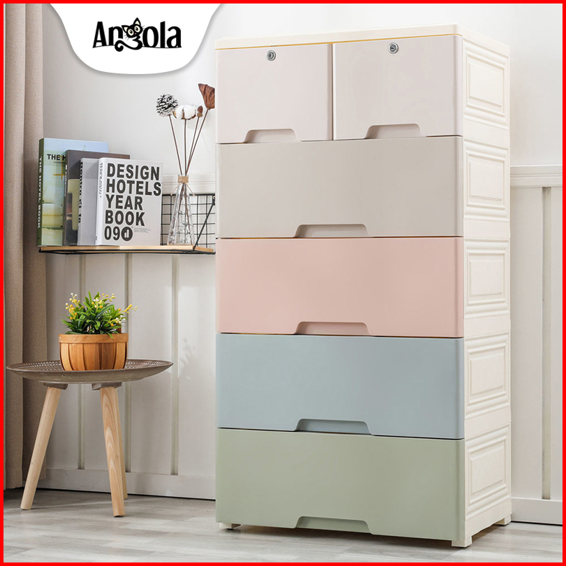 Angola Lemari Plastik Pakaian 5 Tingkat C68 Laci Susun Cabinet Plastik Rak Susun Penyimpanan Baju